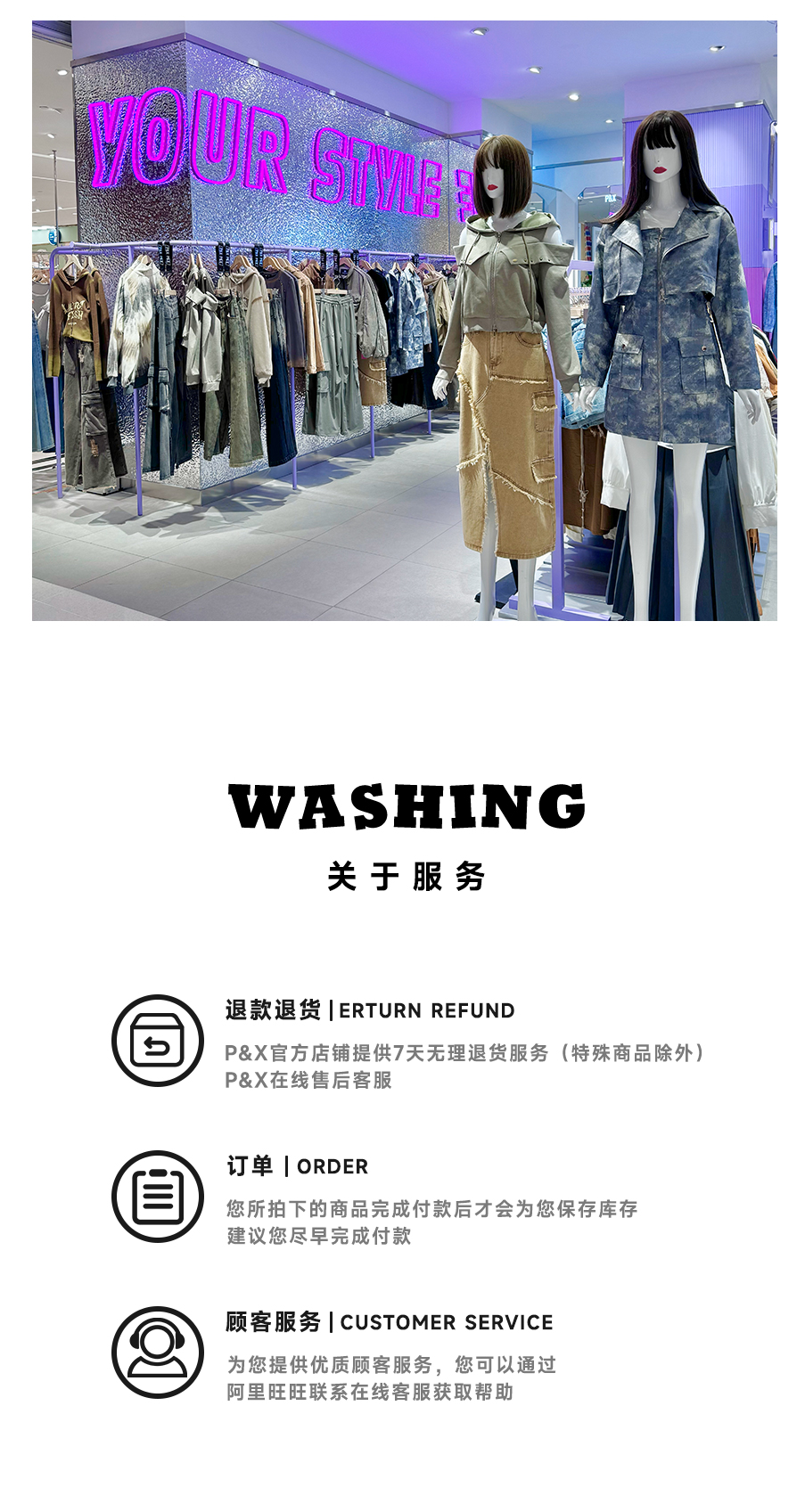 P&X设计师女装 时尚街头水洗牛仔长裤宽松阔腿裤825110051 黑色