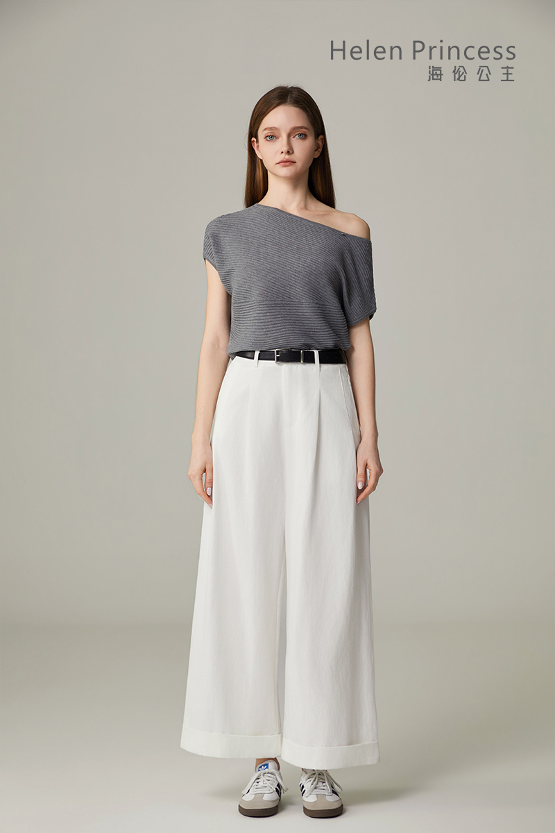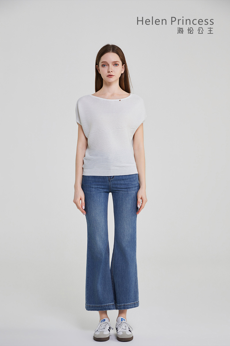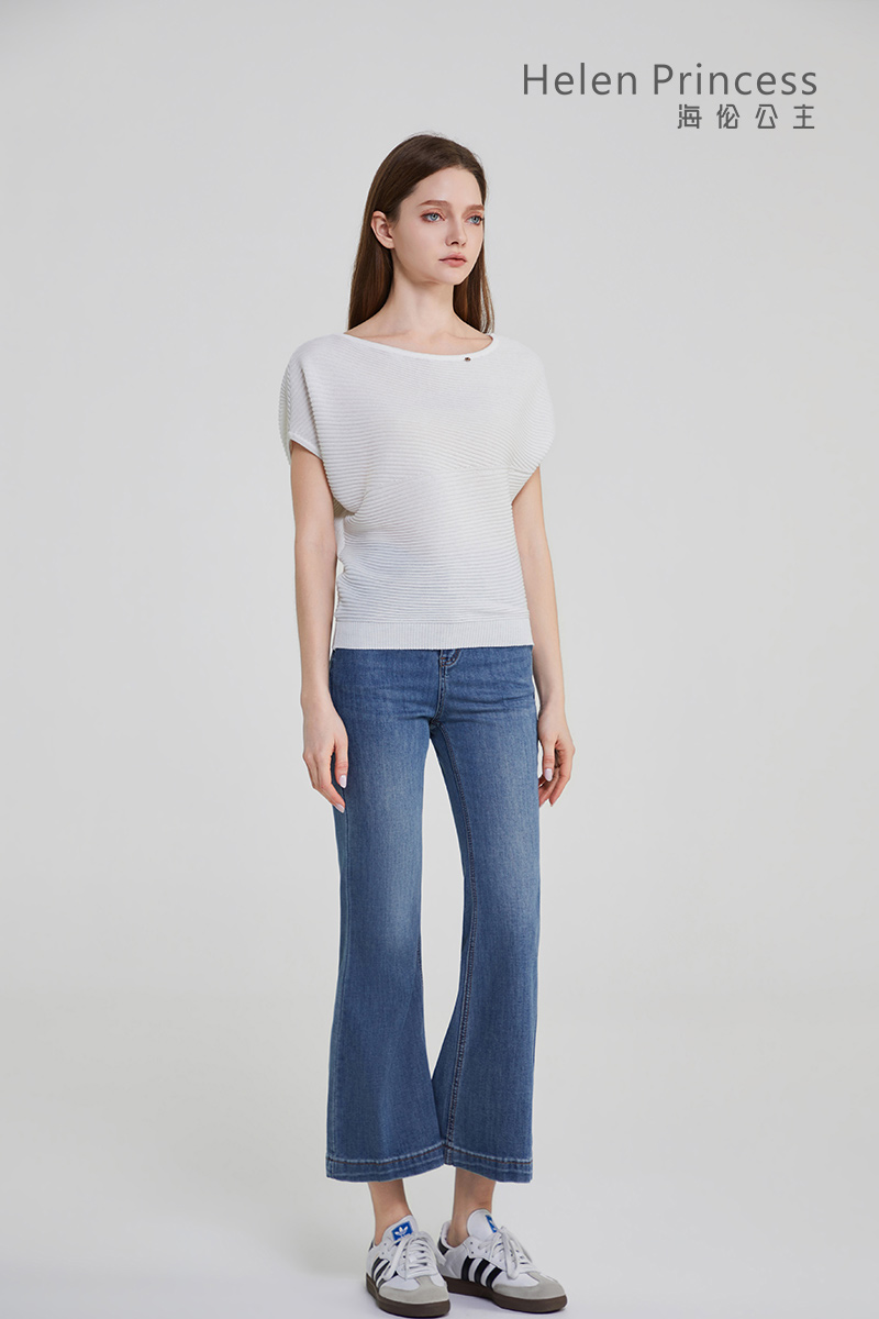 大圆领设计展现锁骨纤细美感,搭配落肩蝙蝠袖,营造慵懒优雅气场。下摆收口,勾勒腰线,调节整体身材比例,更显腿长。
