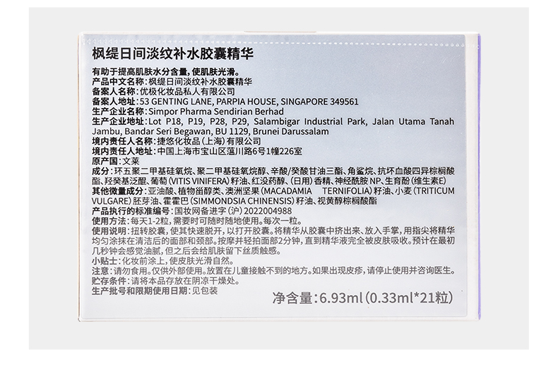 枫缇葡萄籽精华油/日间精华油 (21粒/盒)