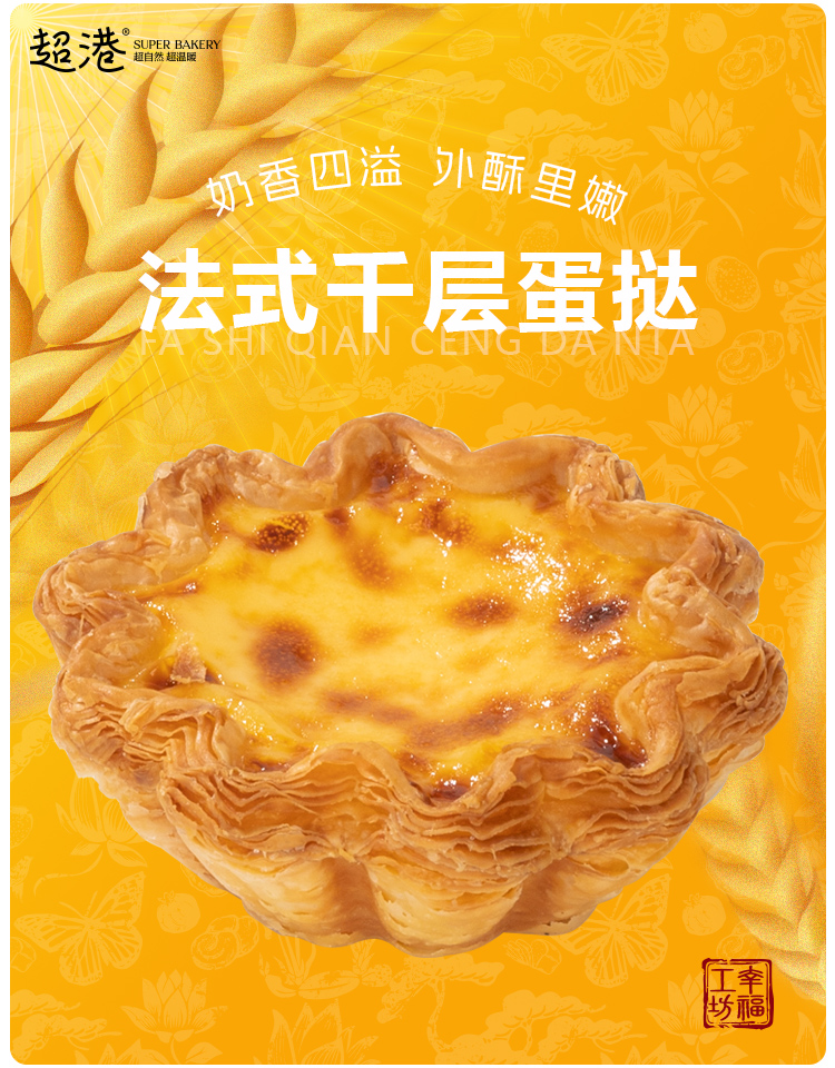超港创立于1992年,是一家集生产销售面包、蛋糕、传统糕点、中西点于一体的全国性连锁烘焙企业,拥有百余家直营门店。超港以“玩味烘焙、文创美学”为经营理念。