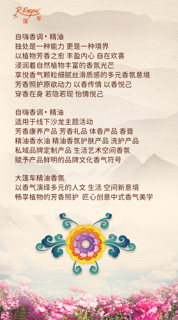 - 大篷车R-EXPQ精油 深度合作全球20多个国家与70多个国际农场,拥有独立芳香师、配方师、调香师团队, 致力于自然植物精油原料供应与香氛香调定制研发,产品结构围绕“环球优选精油原料库”和“海量原创香