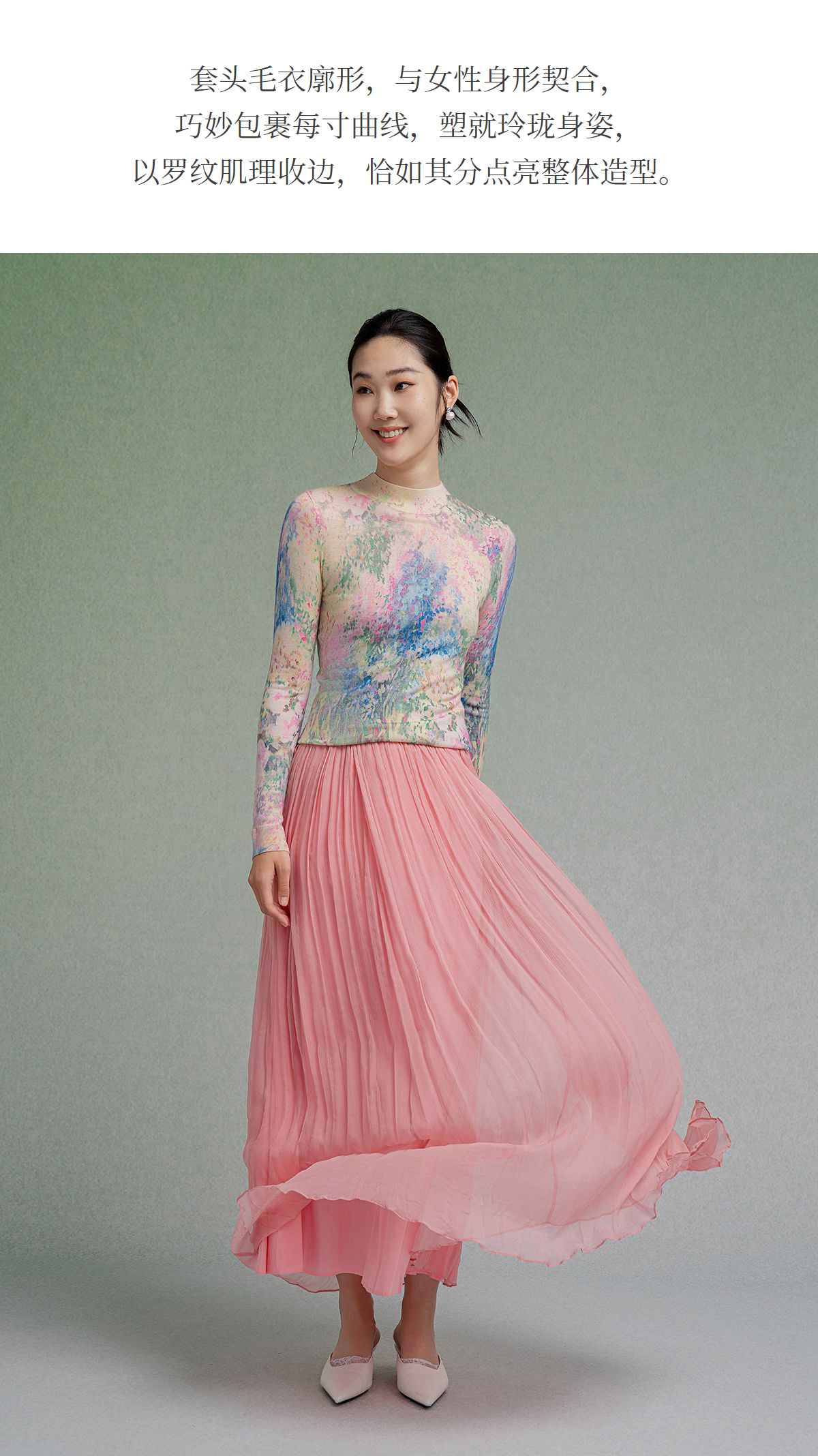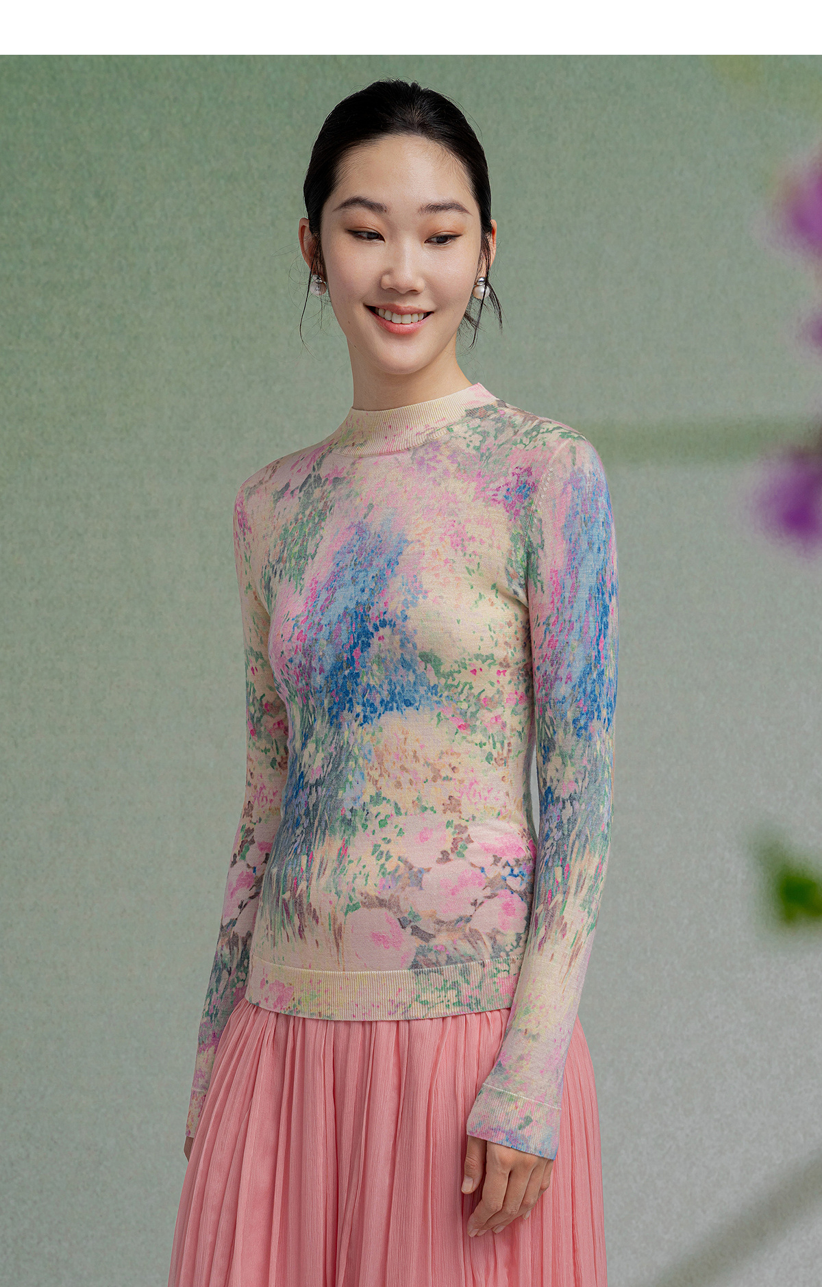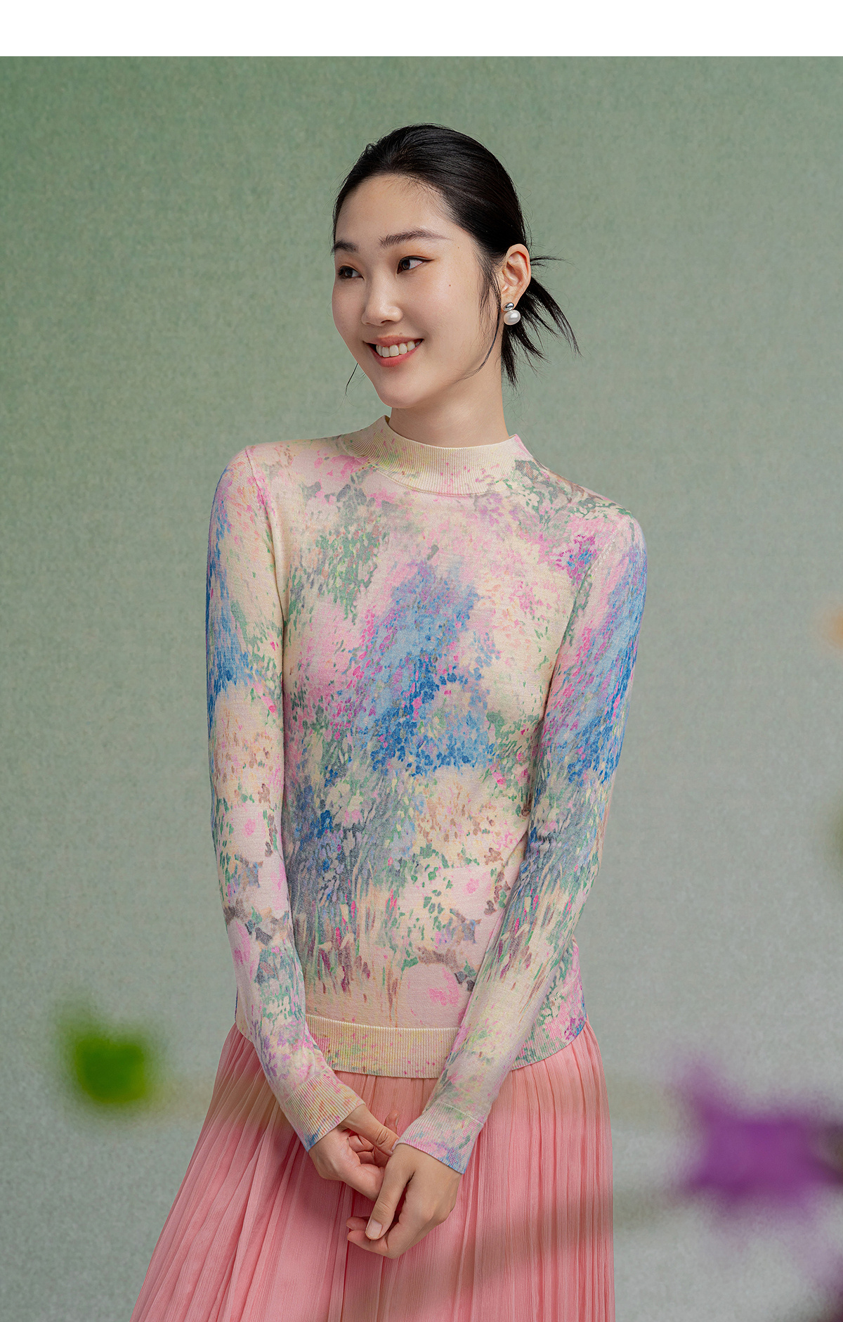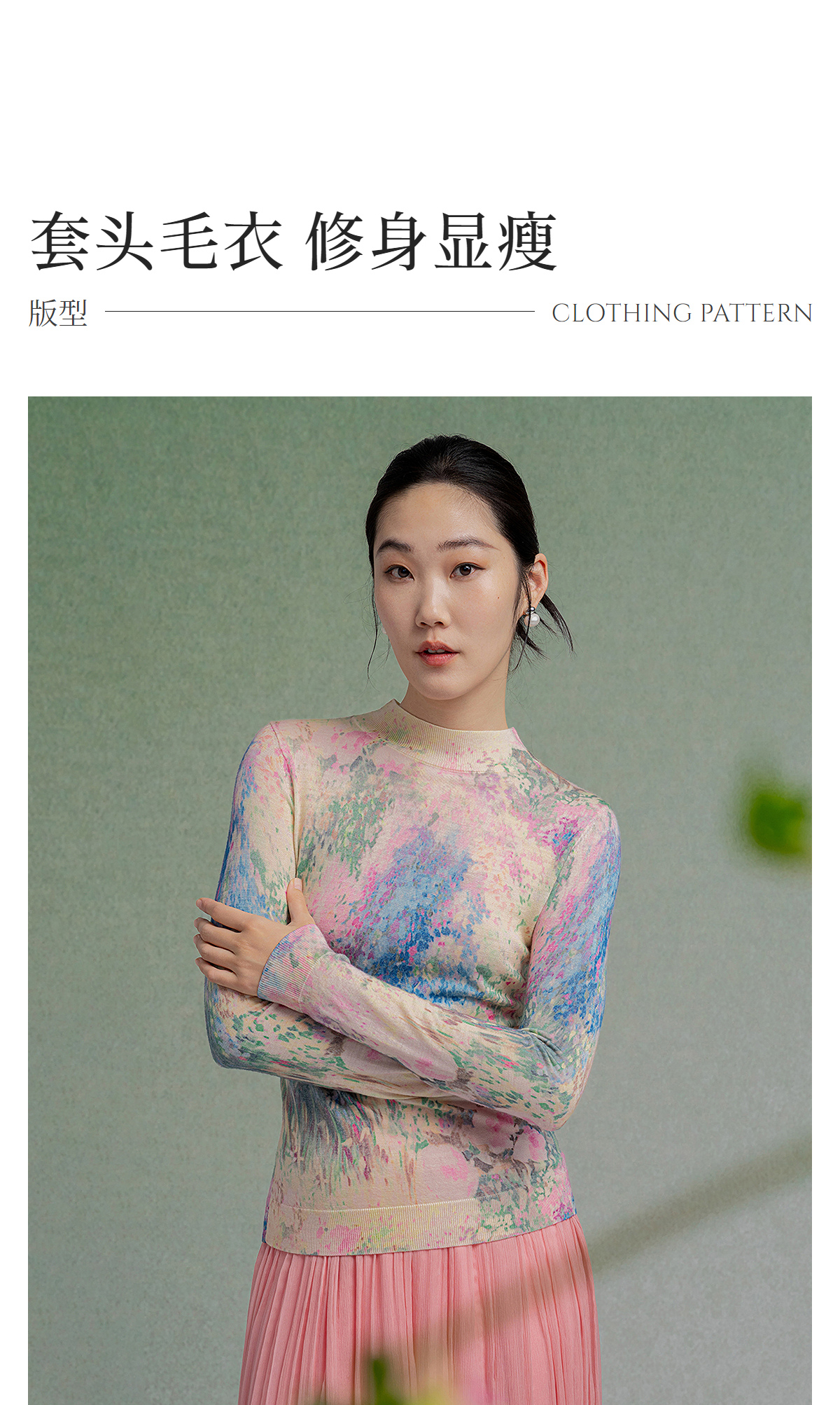 【林栖设计小店】【现货】绵羊毛毛织上衣油画衫优雅印花修身显瘦2025秋冬新款针织衫女1954004