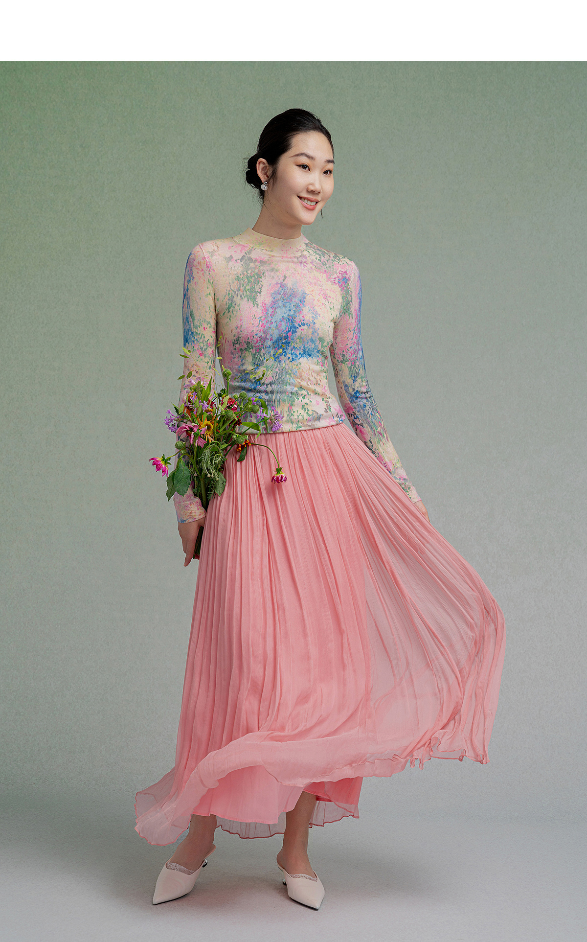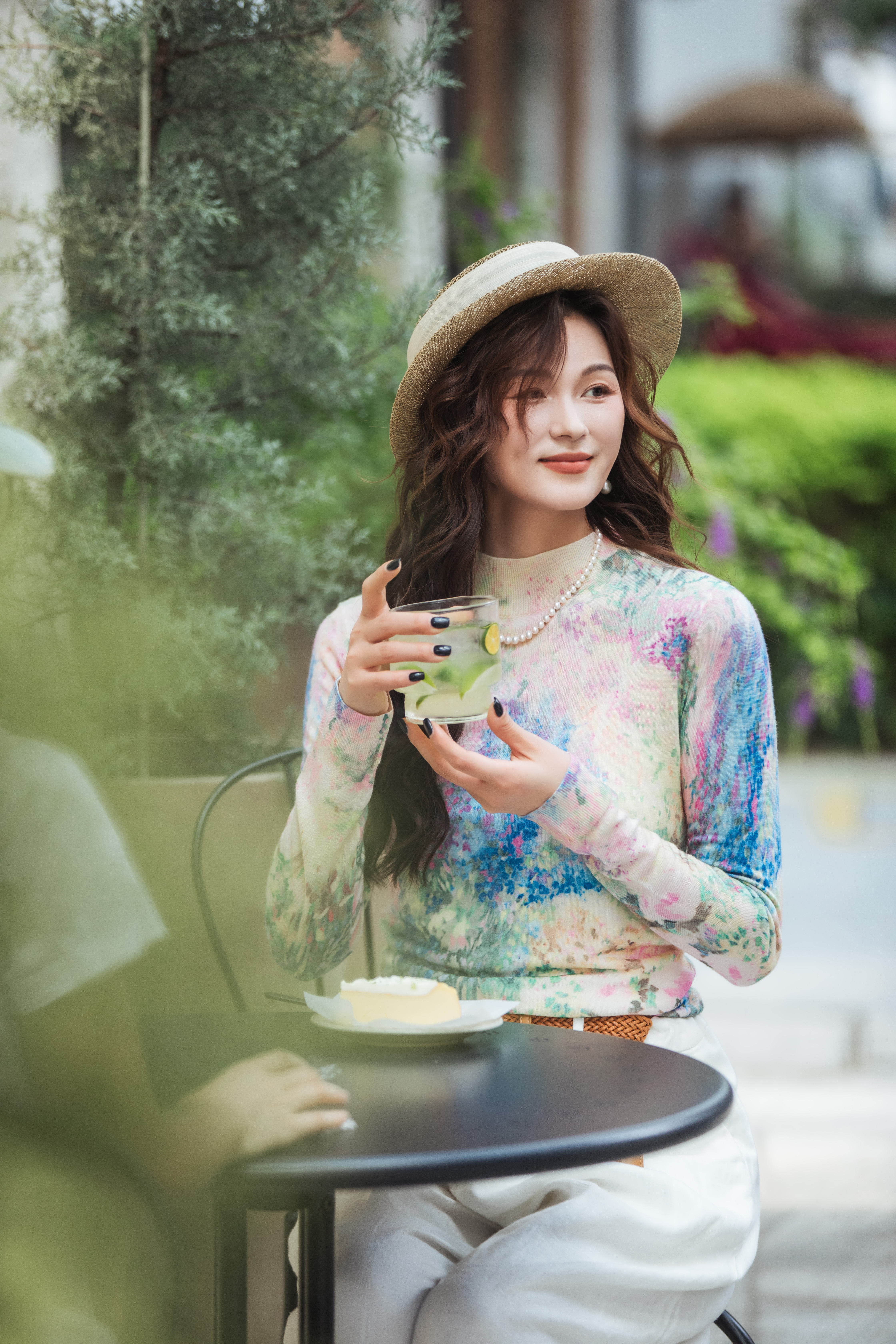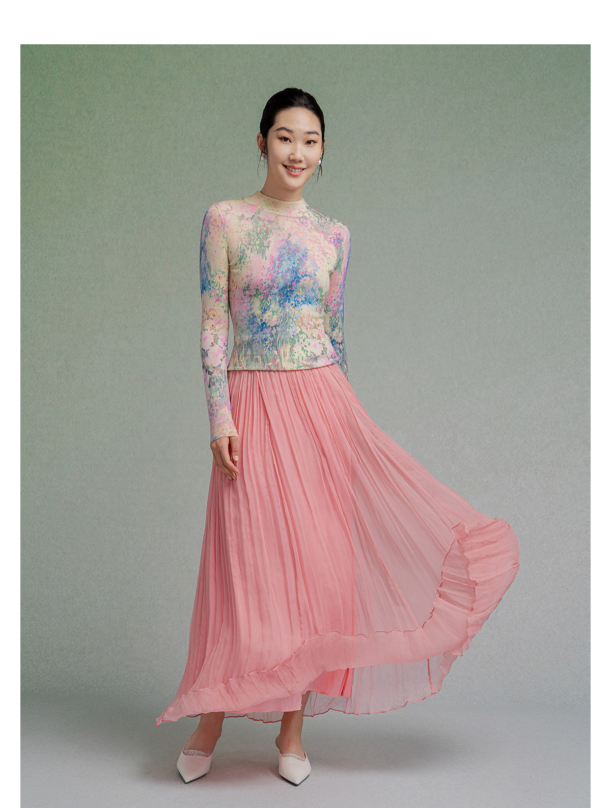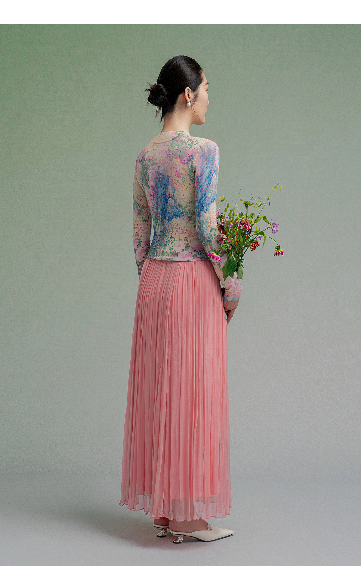 【林栖设计小店】【现货】绵羊毛毛织上衣油画衫优雅印花修身显瘦2025秋冬新款针织衫女1954004