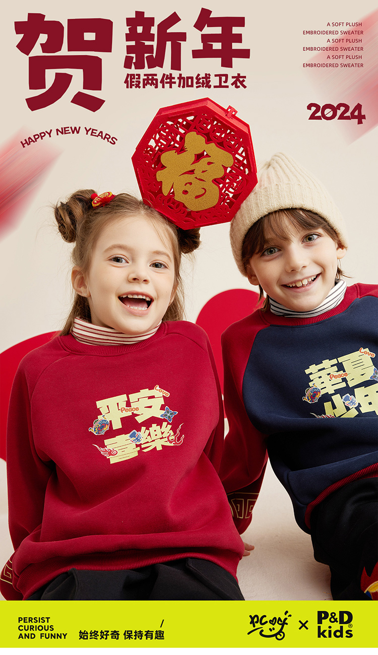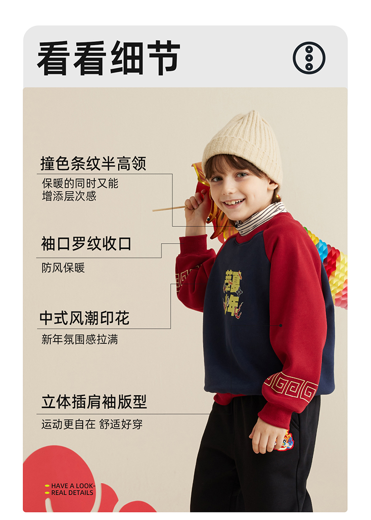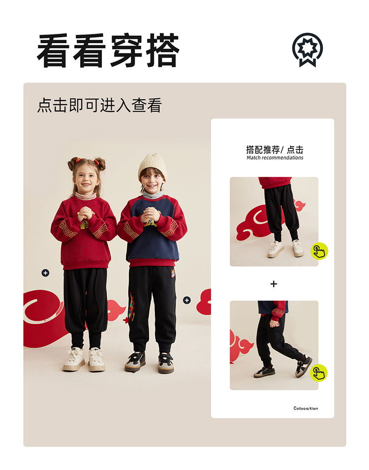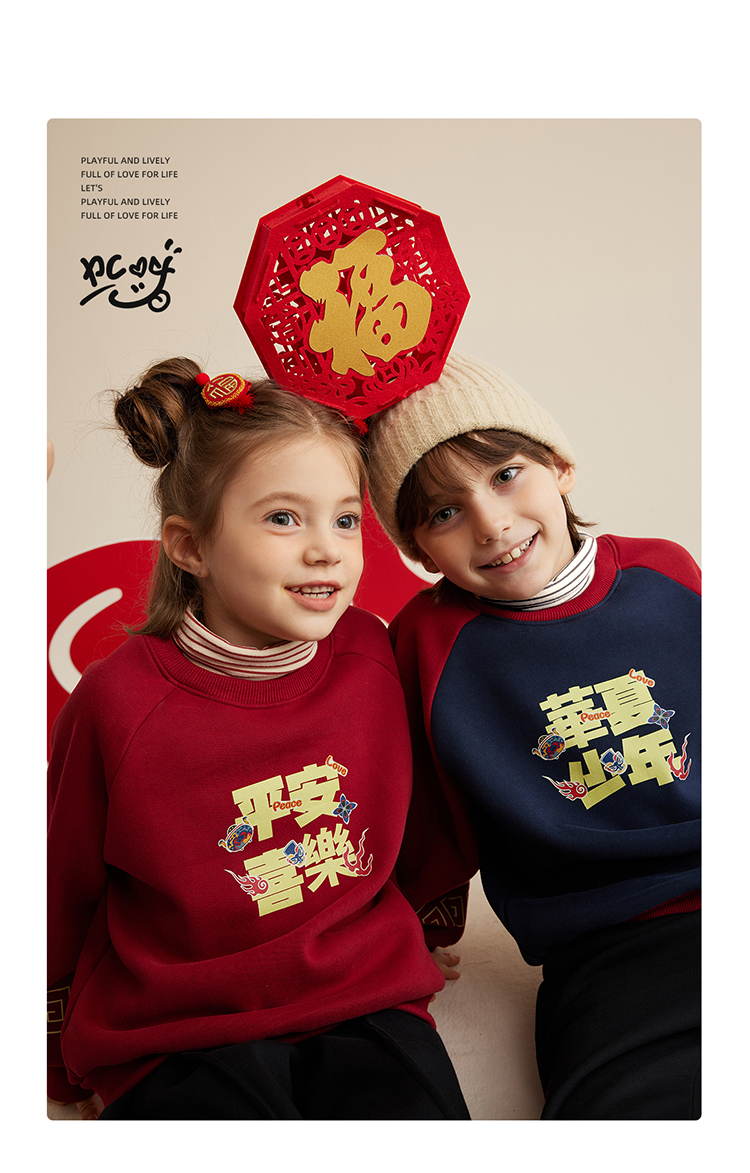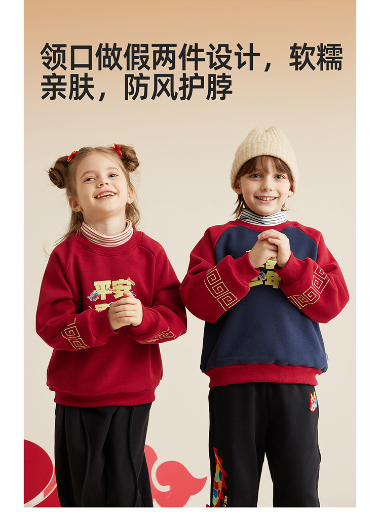 【贺新年 复古新中式】儿童国潮风小立领加绒卫衣PDWY2321