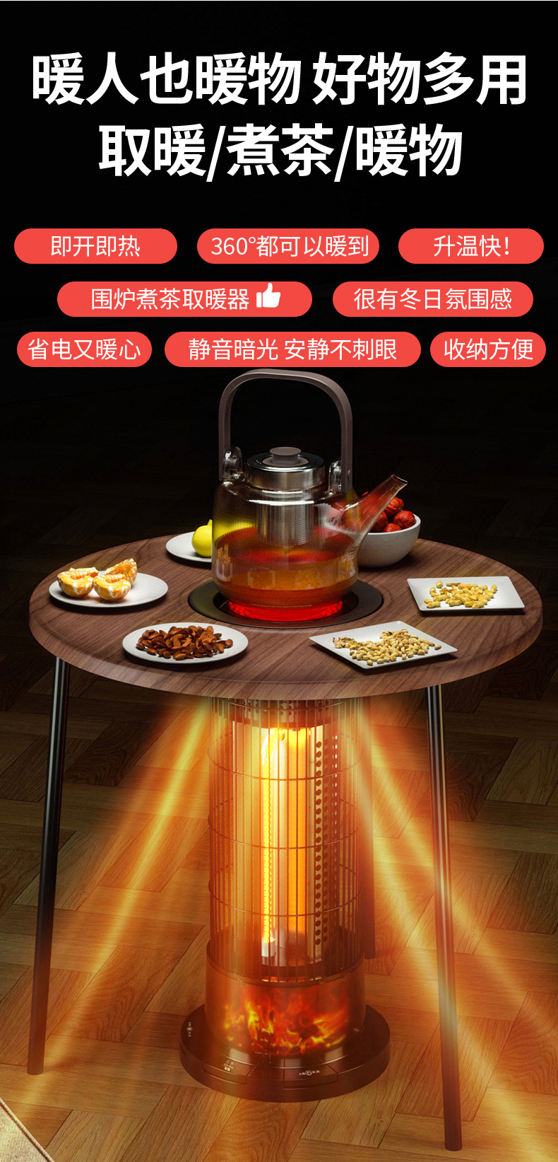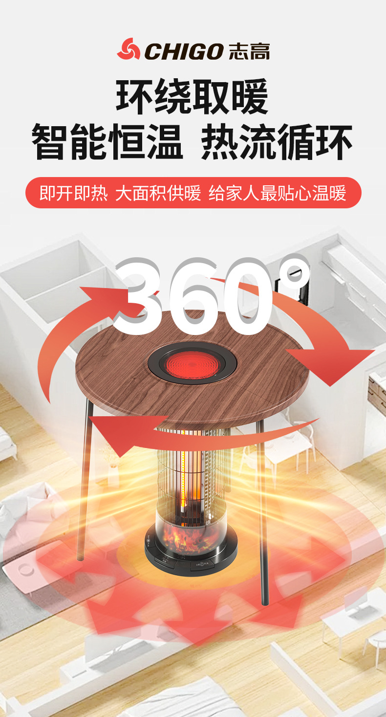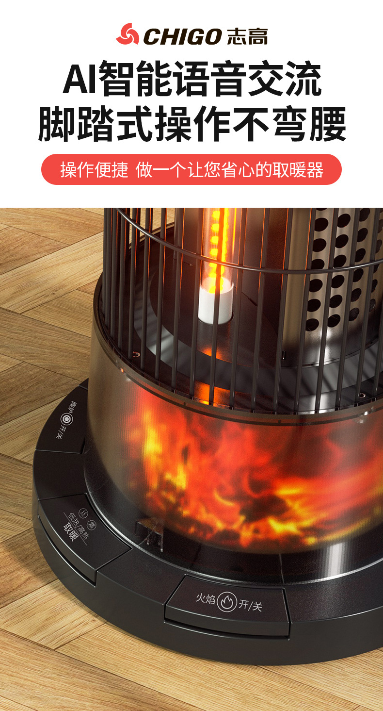 发热快【360°环绕取暖❗️脚踏式操作不弯腰】志高围炉取暖器家用围炉煮茶电暖气3D火焰速热小太阳烤火炉电暖炉。ja