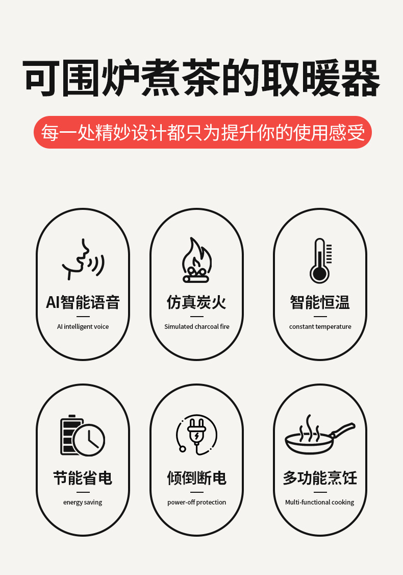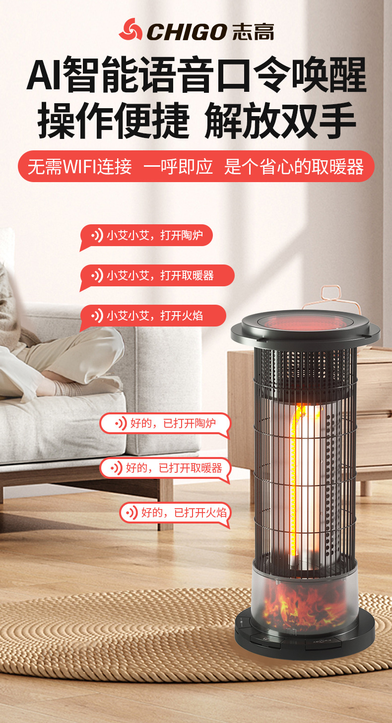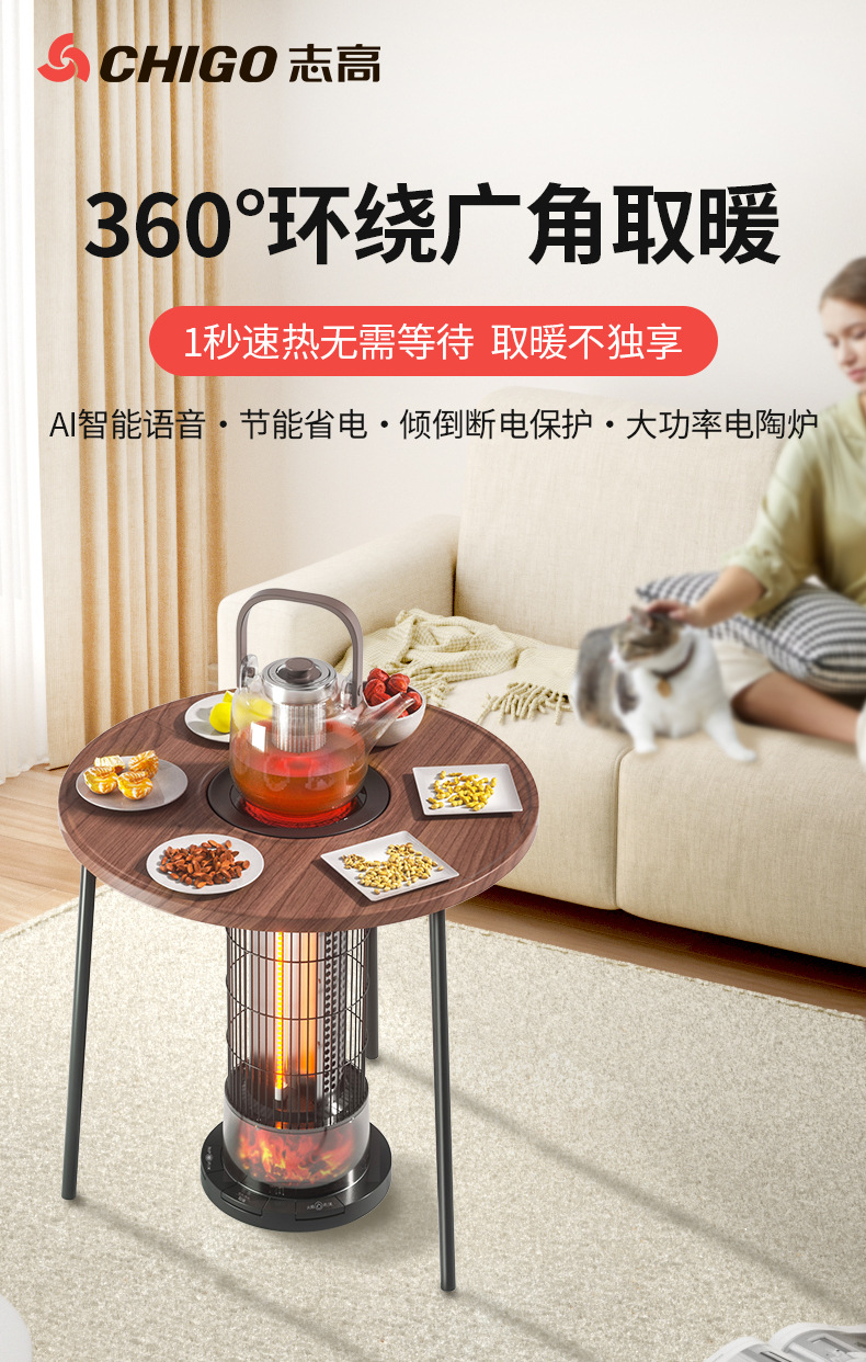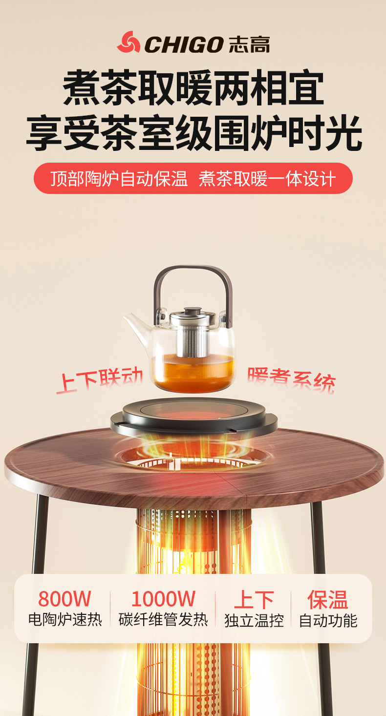 发热快【360°环绕取暖❗️脚踏式操作不弯腰】志高围炉取暖器家用围炉煮茶电暖气3D火焰速热小太阳烤火炉电暖炉。ja