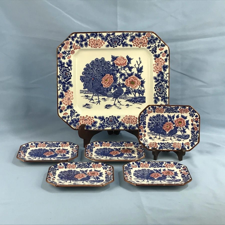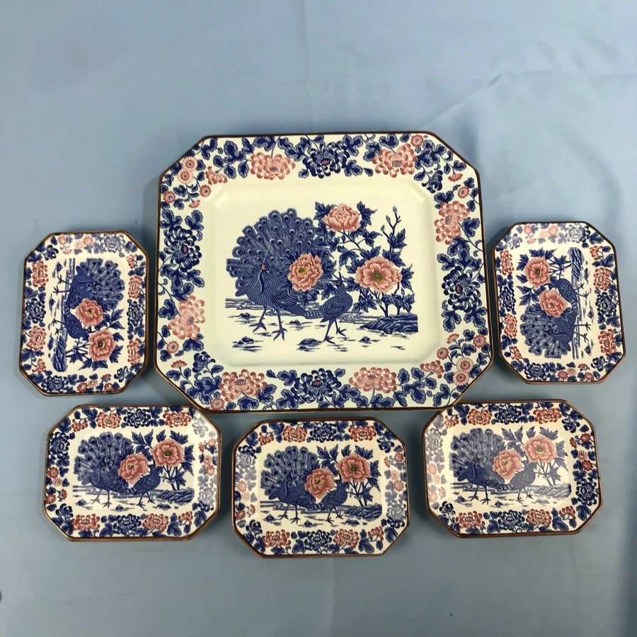 日本富永陶器金孔雀餐盘套组 6枚装 原盒保留 实物见视频