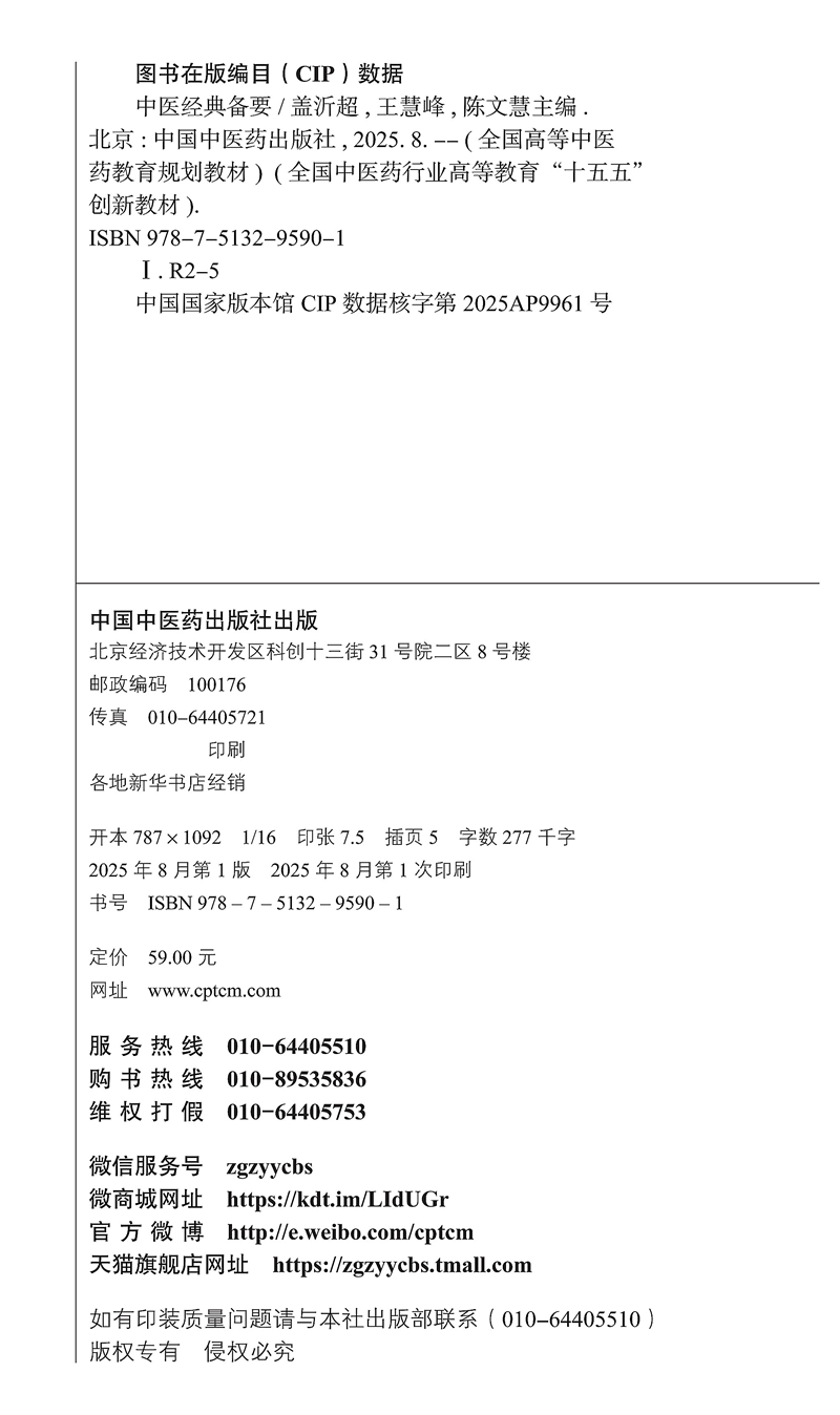 中医经典备要 全国中医药行业高等教育十五五创新教材 盖沂超 王慧峰 陈文慧 供中医学类中西医结合类等相关专业用中国中医药出版社
