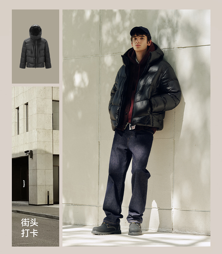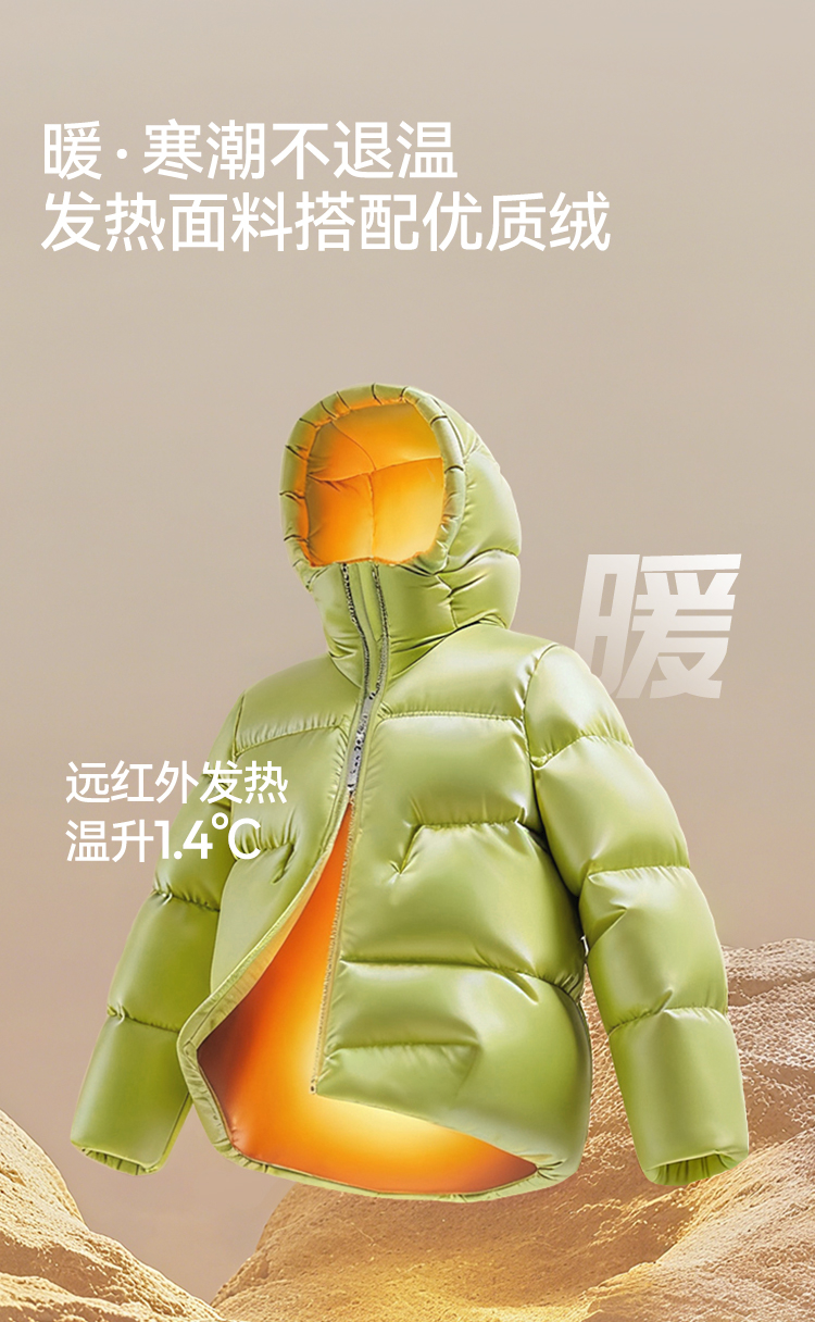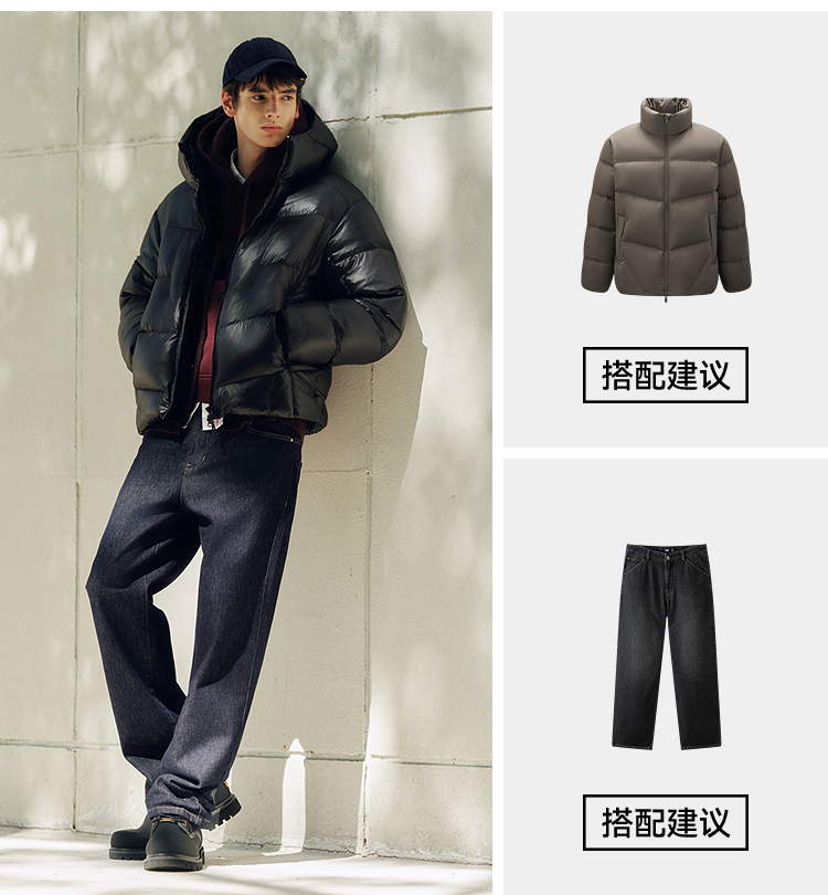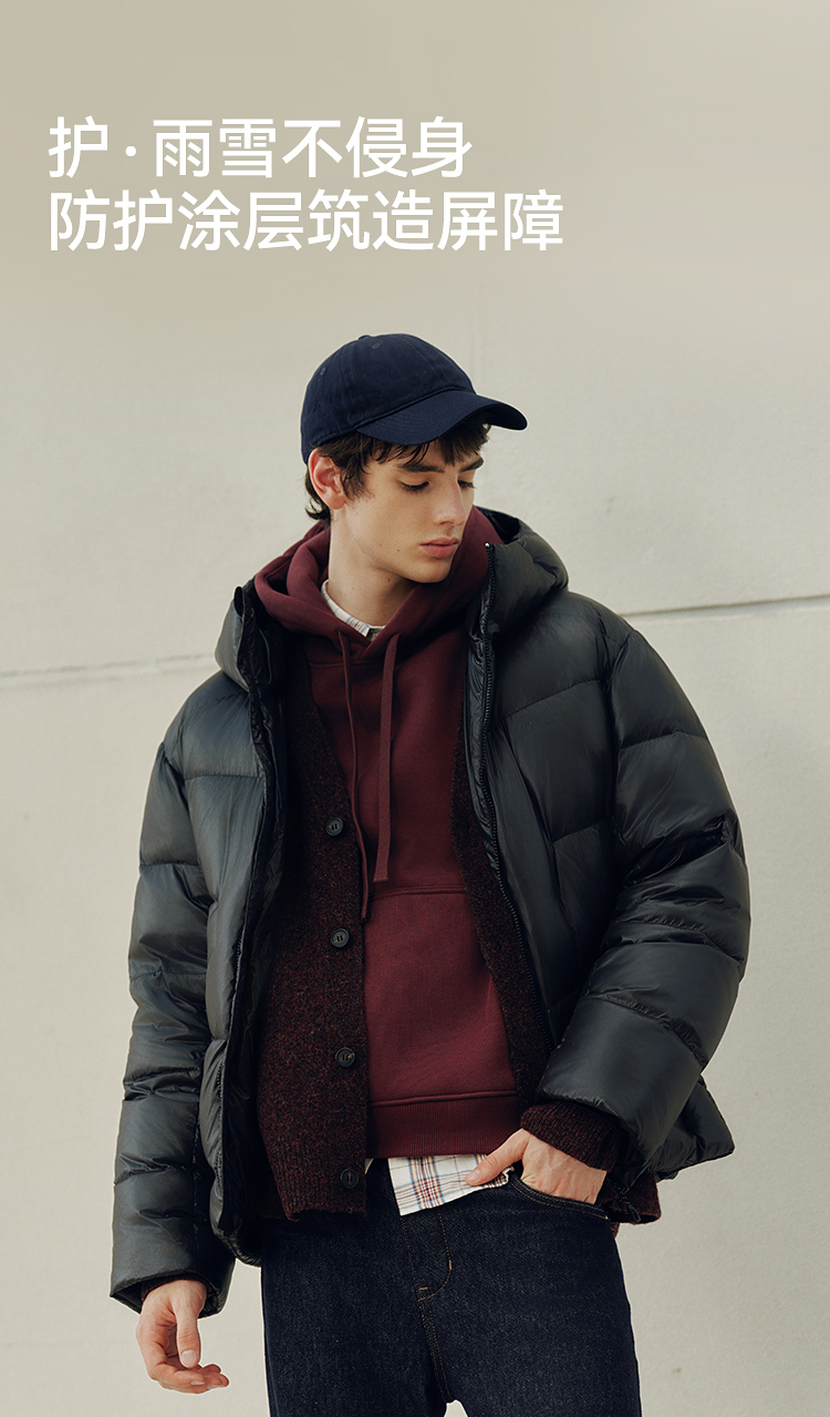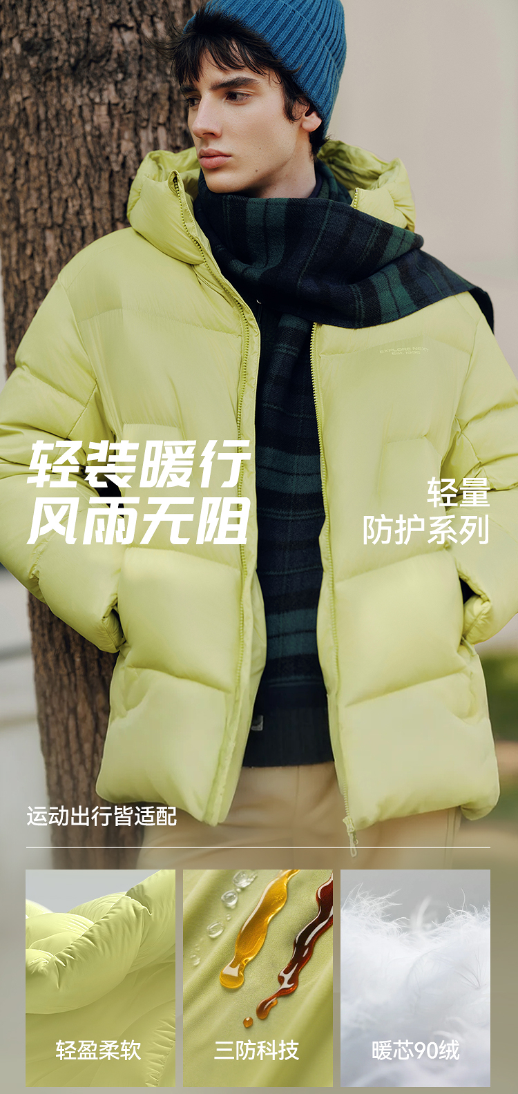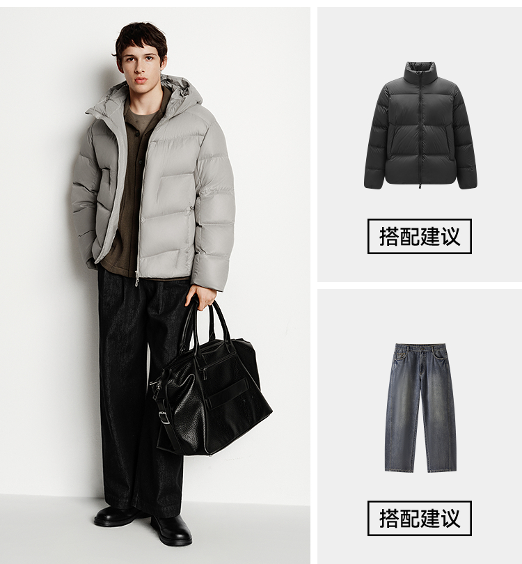 森马羽绒服男宽松连帽面包服三防外套发热保暖抗静电2025新款冬装