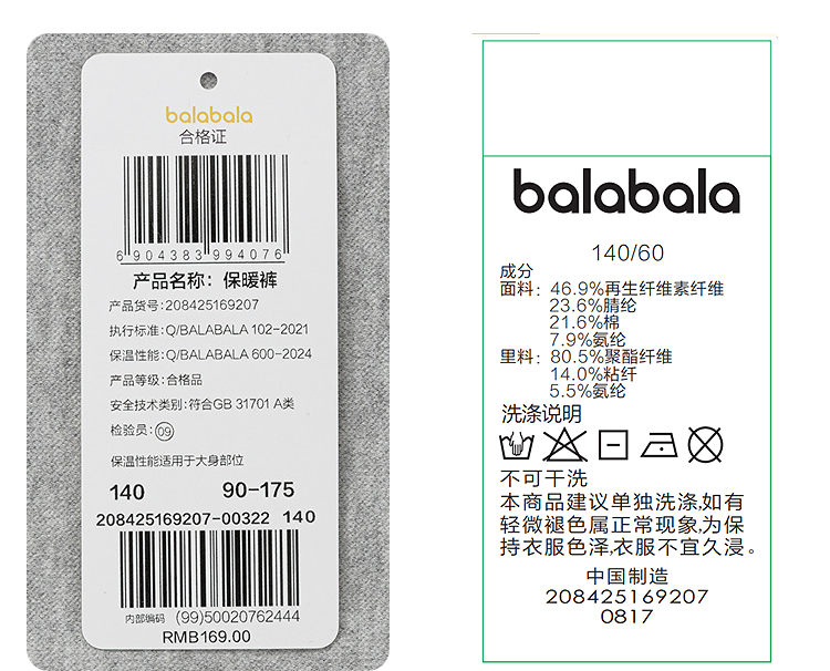 巴拉巴拉balaOne儿童保暖裤男童女童睡裤打底裤新款童装2025秋冬