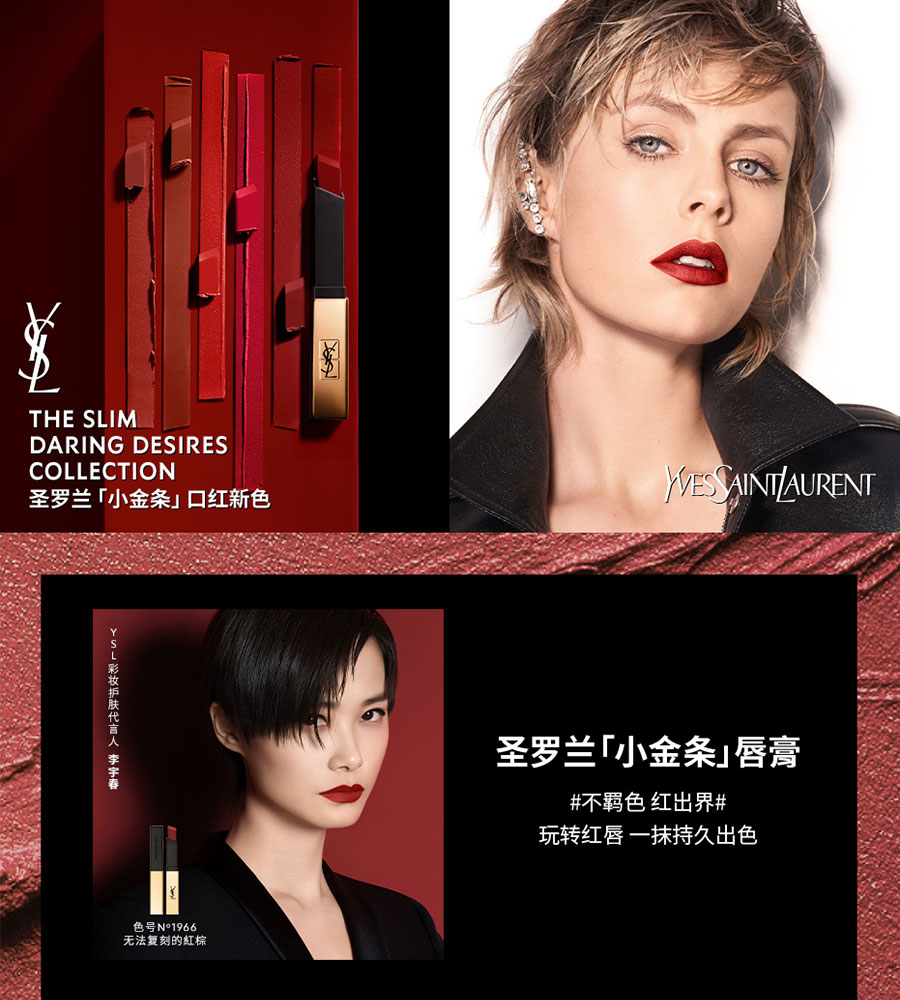 Yves Saint Laurent Beauté 自1964年成立以来不断研发及推出层出不穷的香水及美容产品。Yves Saint Laurent 于50年间已多次缔造成功产品,包括圣罗兰奥飘茗女士香水、圣罗兰巴黎香水和圣罗兰天之骄子男士香水系列。Yves Saint Laurent 化妆品以最高科技研制成,配以珠宝盒般精致的包装,经典产品包括圣罗兰明采笔、圣罗兰绒密睫毛膏、圣罗兰纯口红和圣罗兰纯色唇釉。Lloyd Simmonds 是品牌的彩妆创作总监。护肤品则结合了尖端科研成果、华丽且细腻质感,当中包括圣罗兰妍活青春系列、圣罗兰纯白高定系列、以及高贵奢华的圣罗兰藏金奢妍系列。