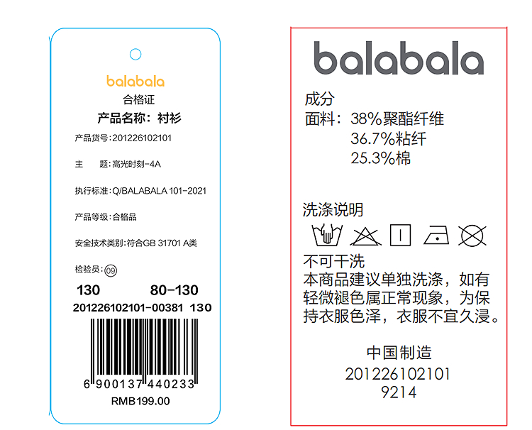 【商场同款】巴拉巴拉童装儿童长袖衬衫男童2026新款夏季撞色上衣