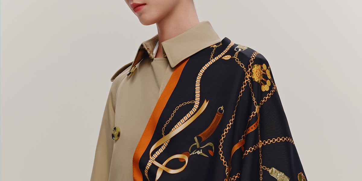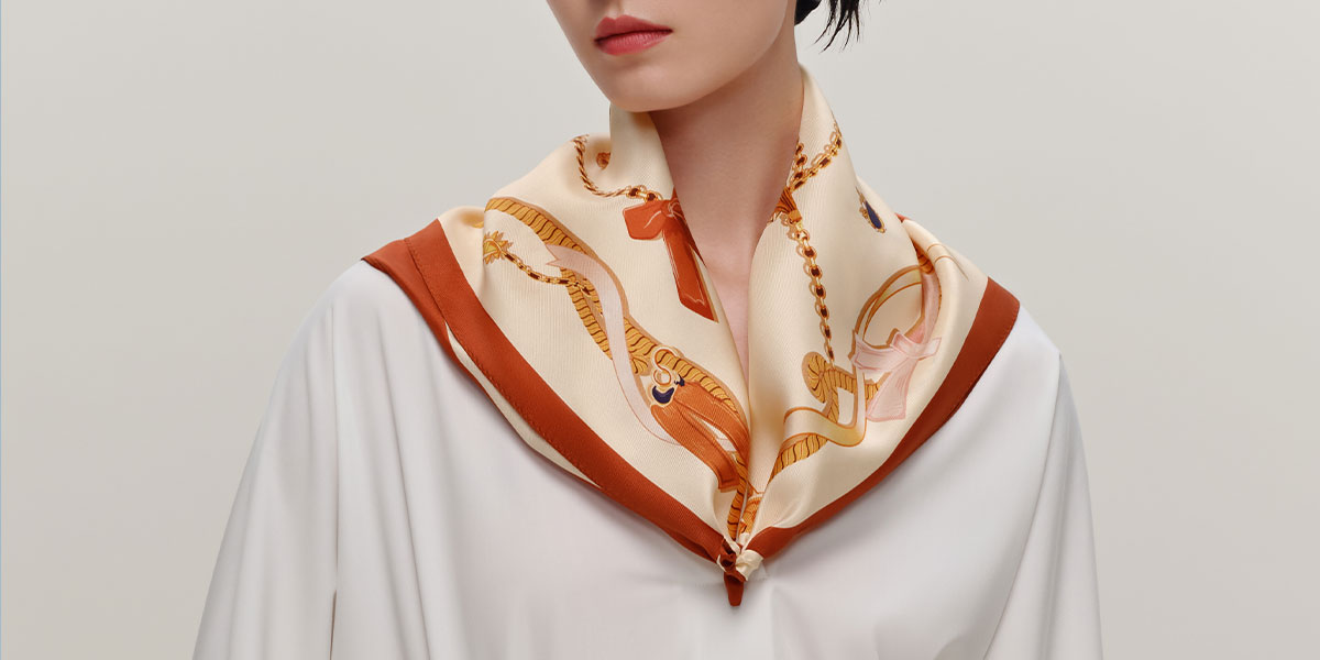 万事利“璀璨之链”63厘米双面印花中方巾