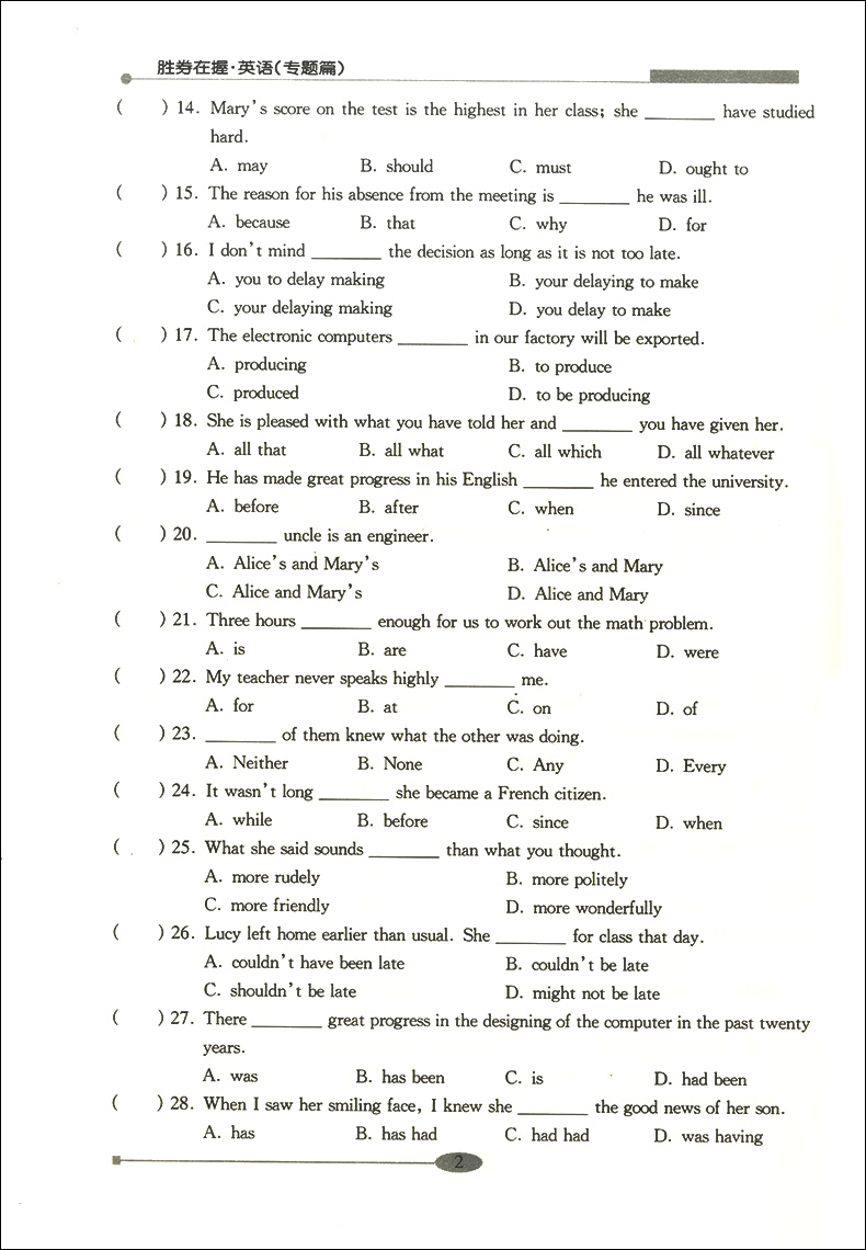 2021版 胜券在握 英语 专题篇 上海市高等院校招收三校生统一考试复习指导丛书 中西书局