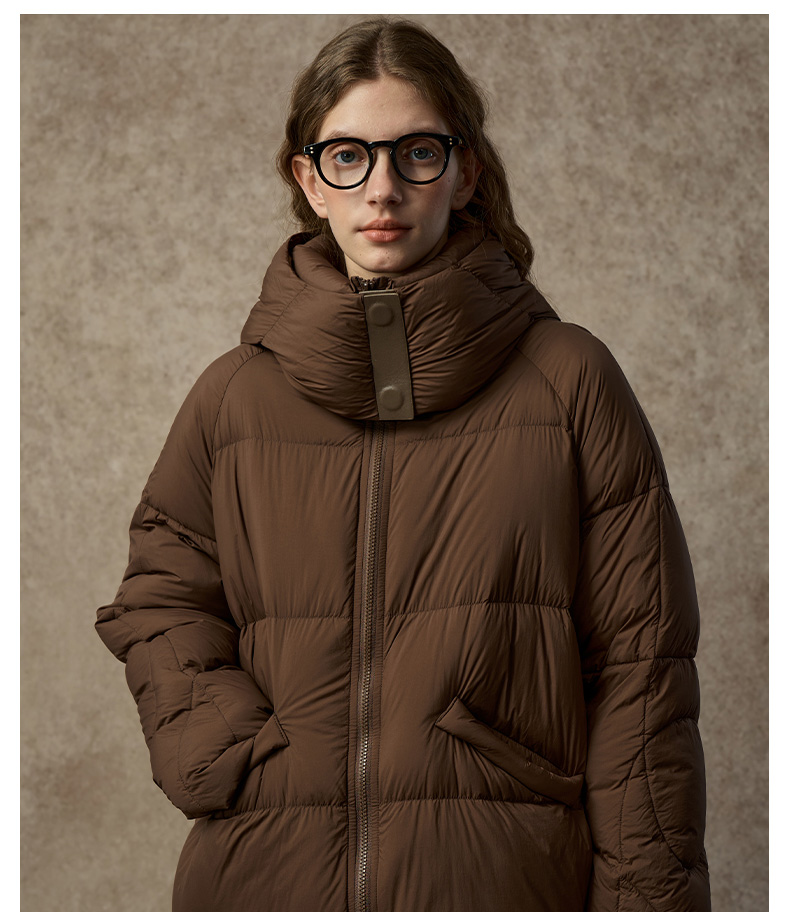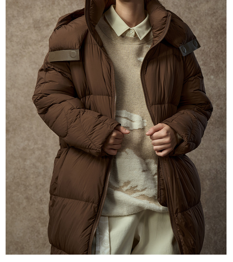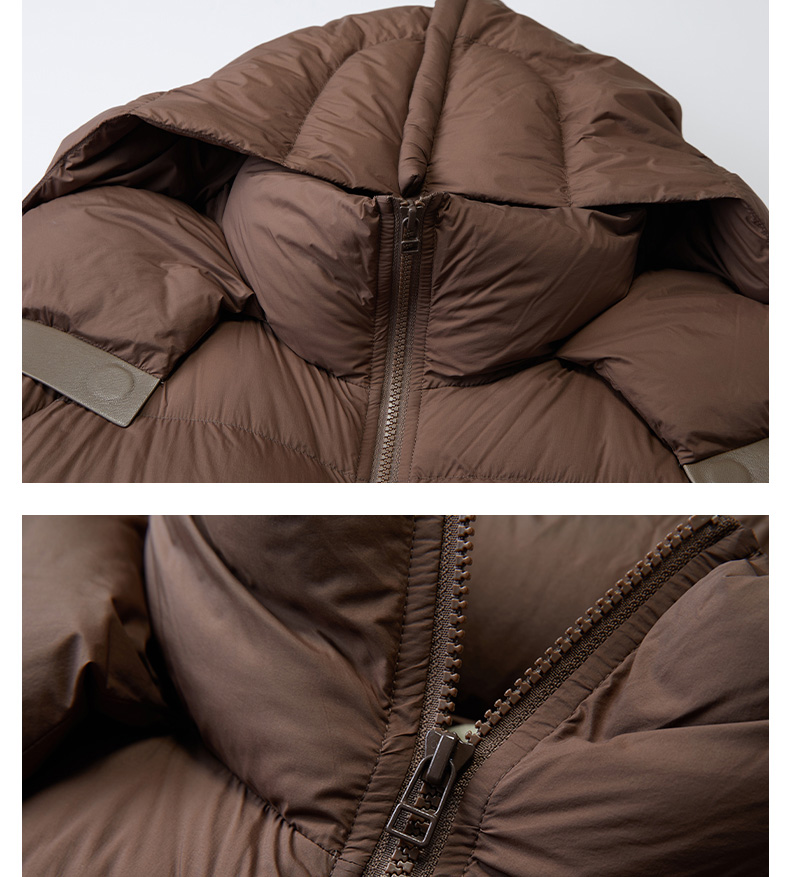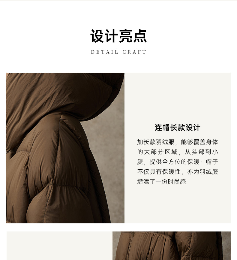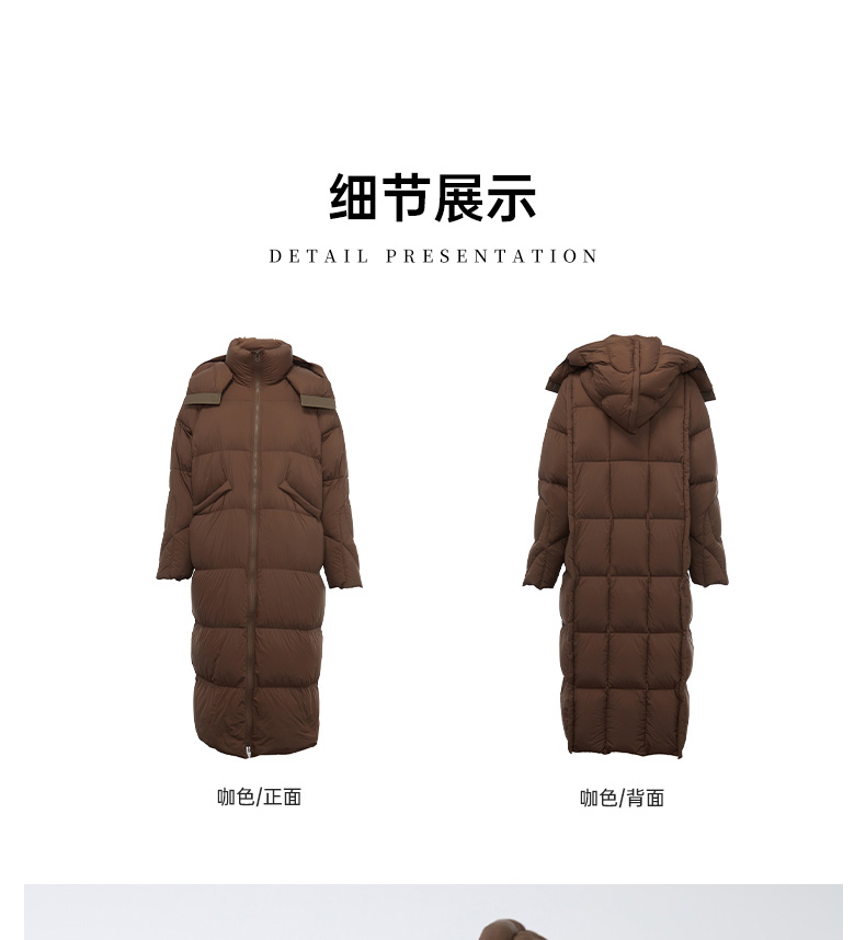 Famecoco范可儿户外极寒加厚过膝连帽白鸭绒长款羽绒服FAC8AH019