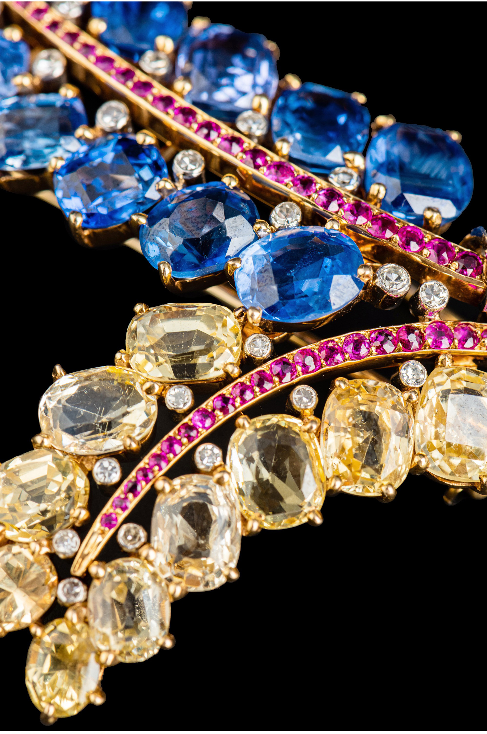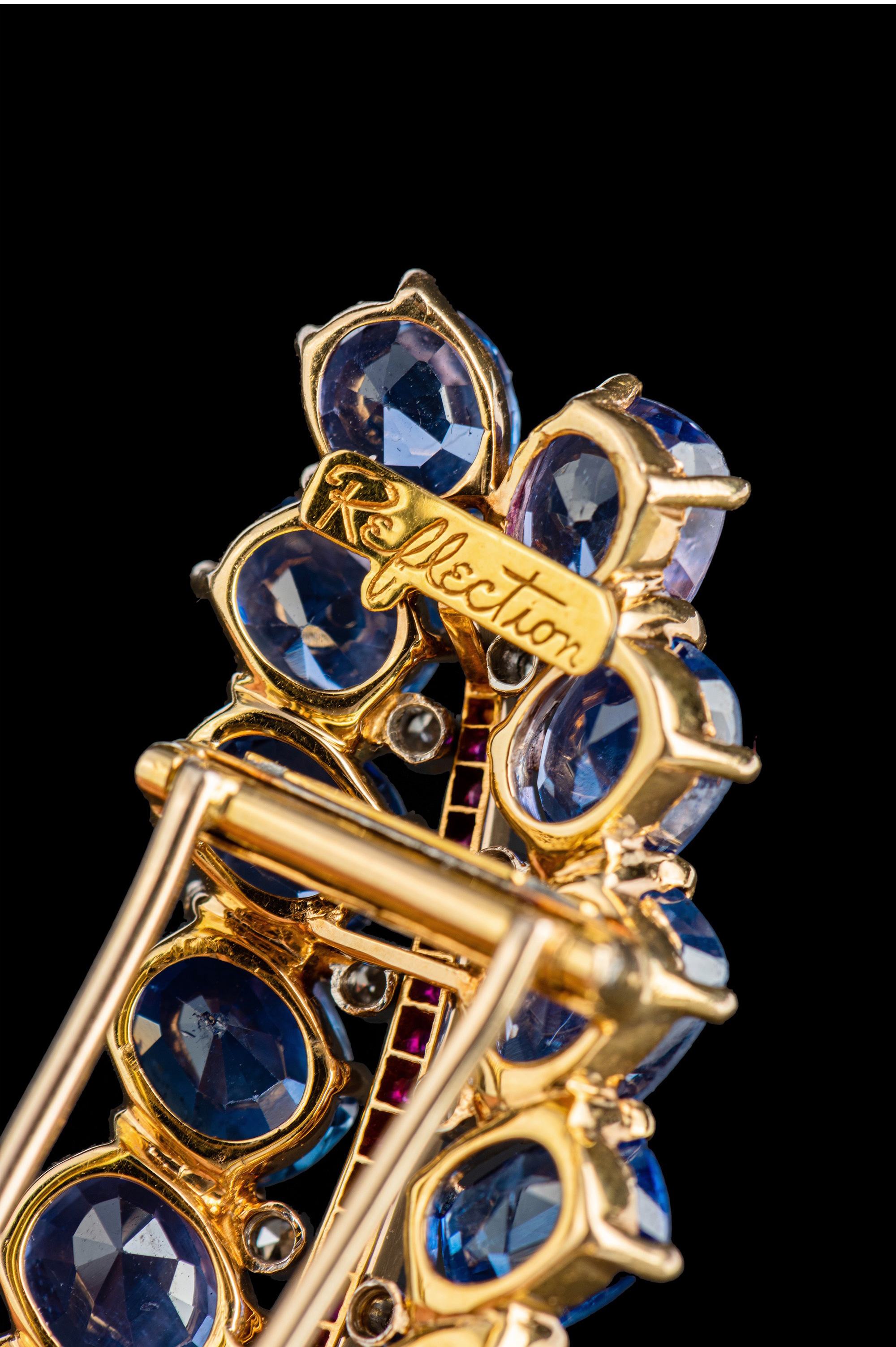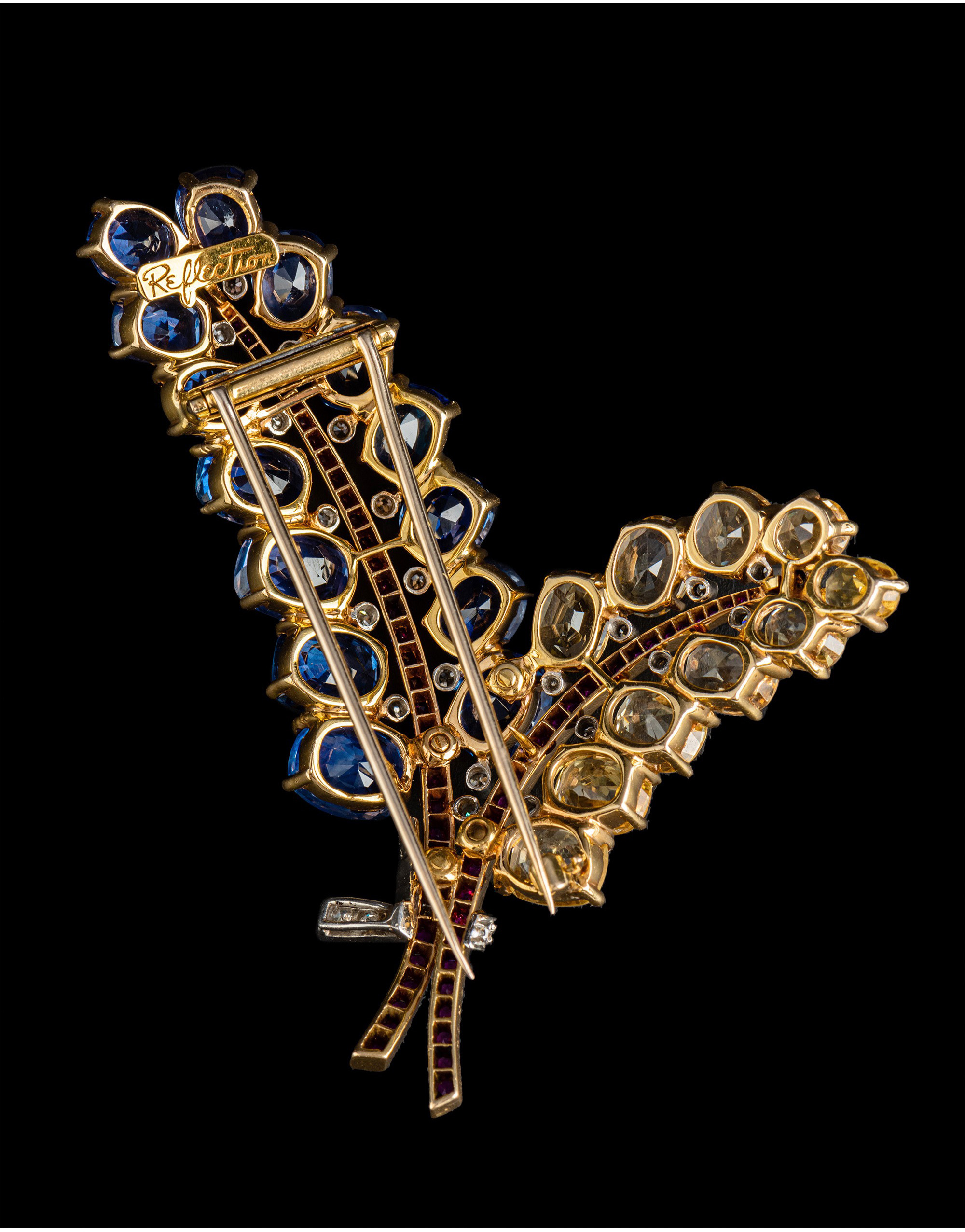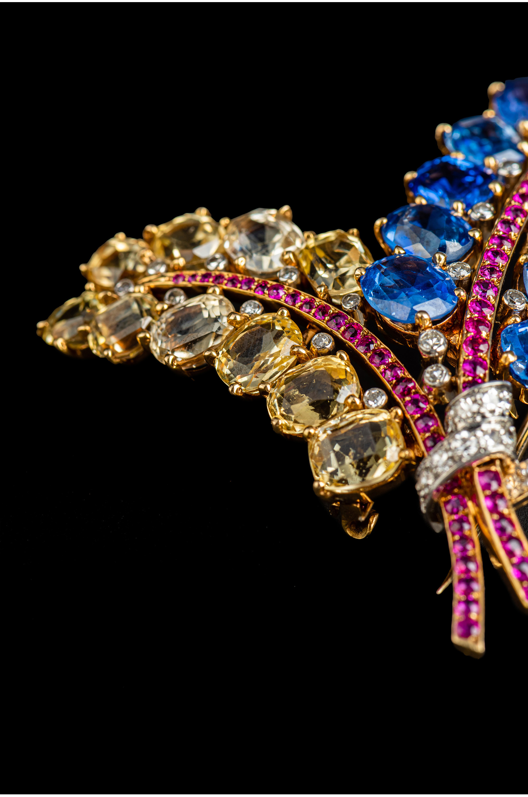 独角鹿西洋古董Mauboussin联名18K金镶蓝宝石红宝石钻石花束胸针