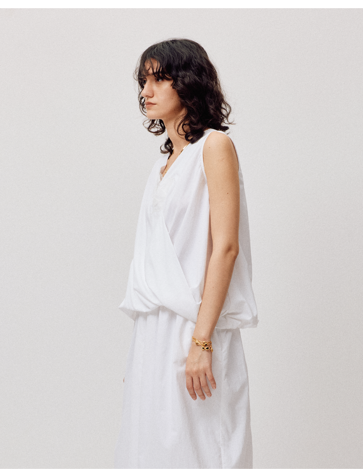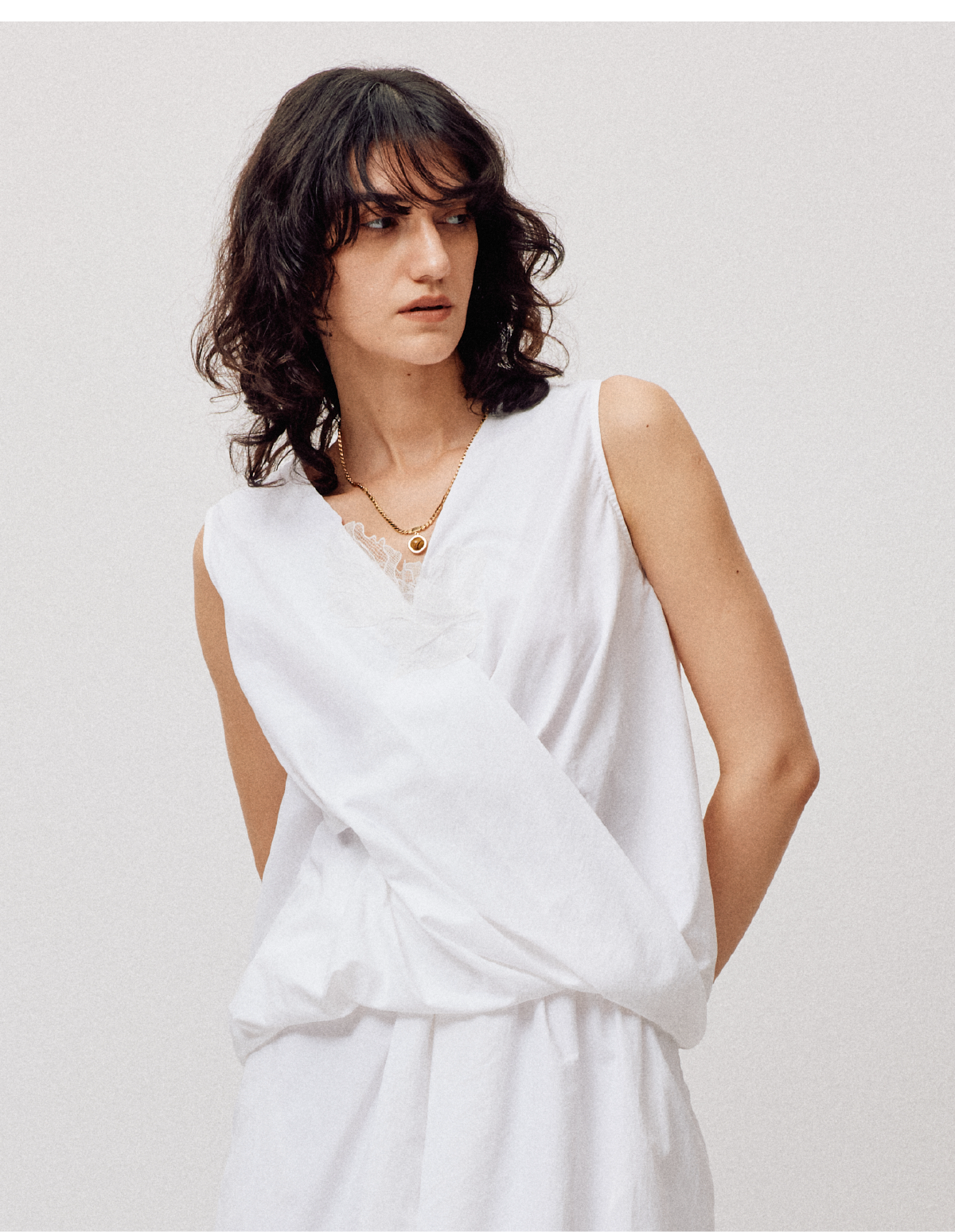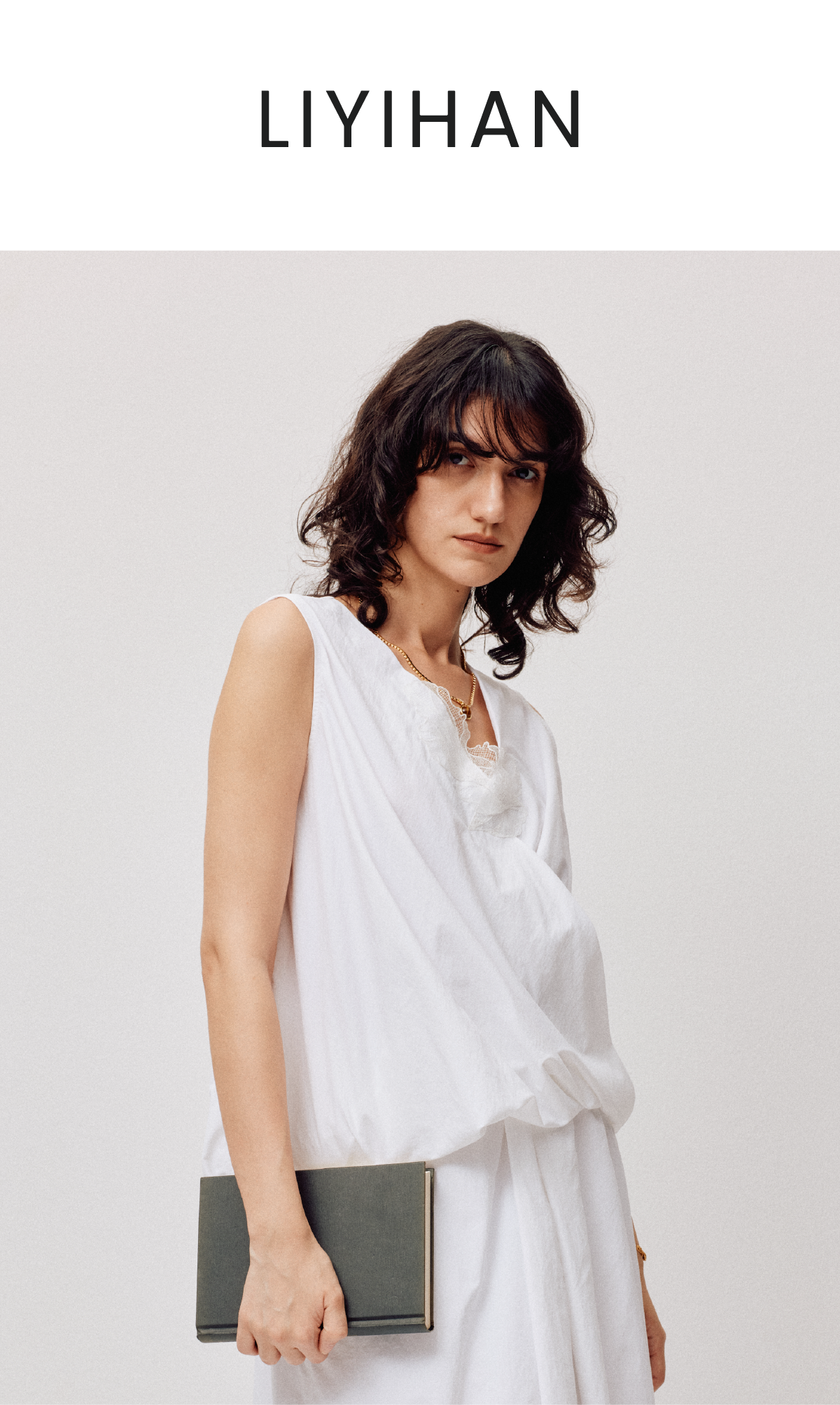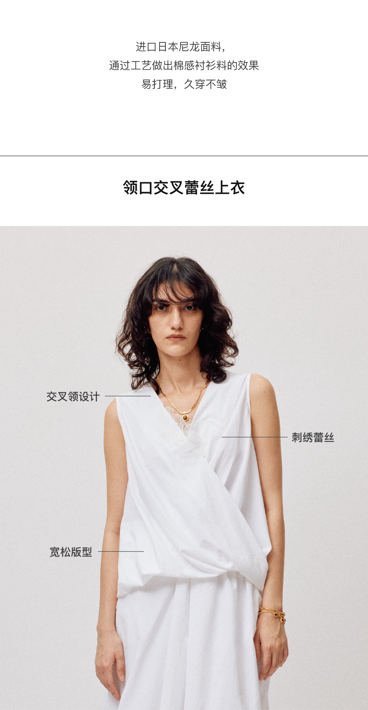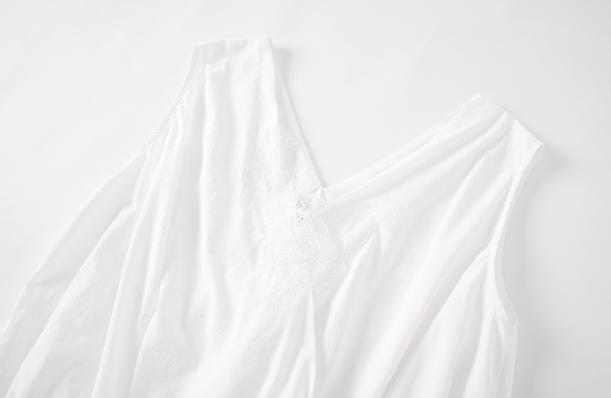 LIYIHAN序章 轻盈质感抗皱纯棉斜肩衬衫料上衣无袖衬衫