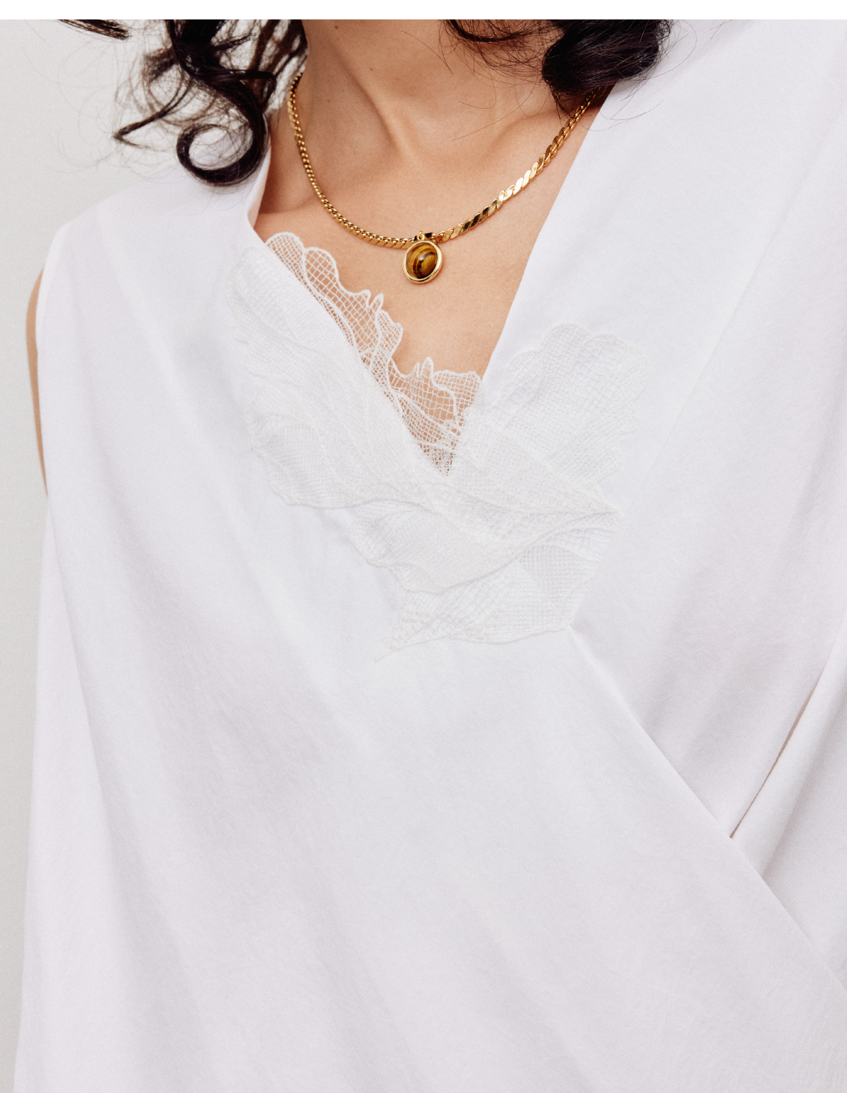 LIYIHAN夏季时尚气质休闲风领口交叉无袖V领蕾丝上衣衬衫