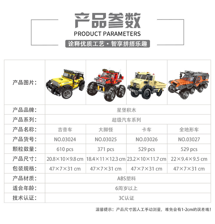星堡超级汽车创意科技越野车/吉普车/卡车/全地形车积木玩具 益智玩具DIY 亲子玩具