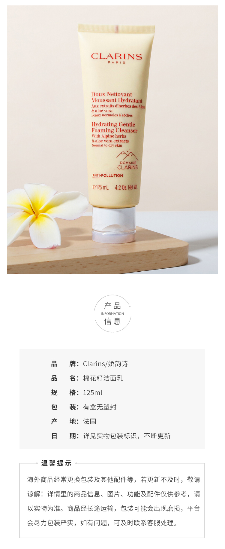CLARINS 娇韵诗 温和泡沫洗面奶 洁面霜 125毫升 平衡水油深层清洁