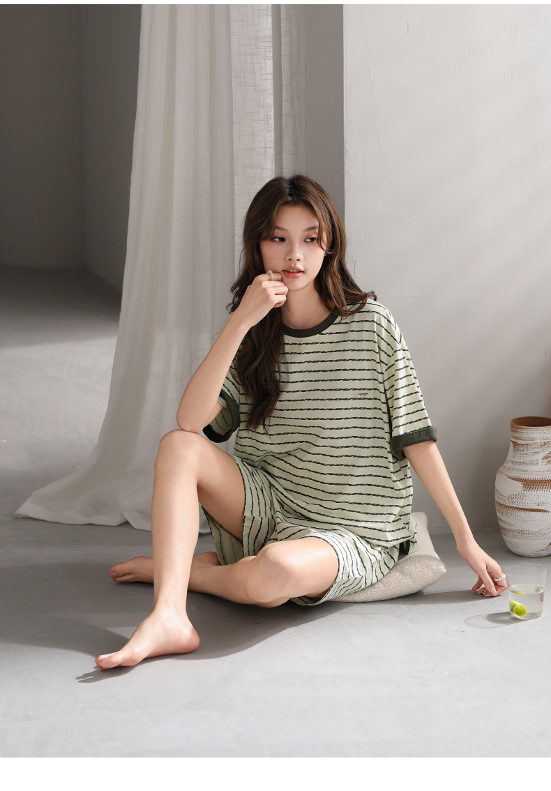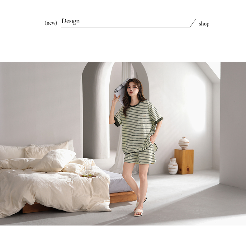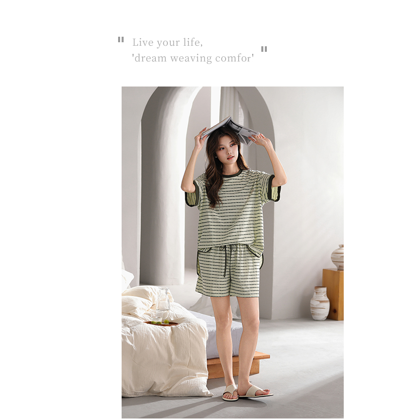 可人儿小众设计师新款奥力绵女士睡衣夏季短袖可外出家居服套装