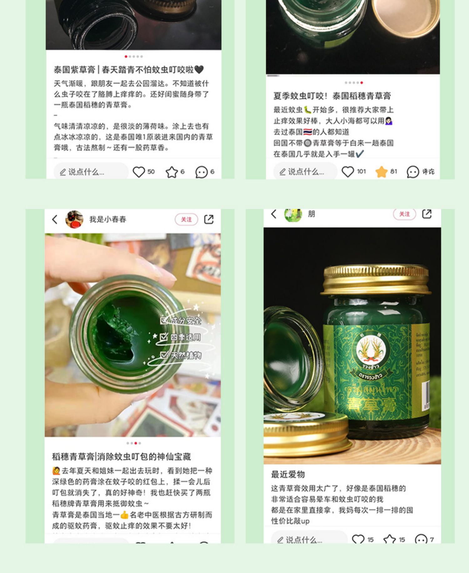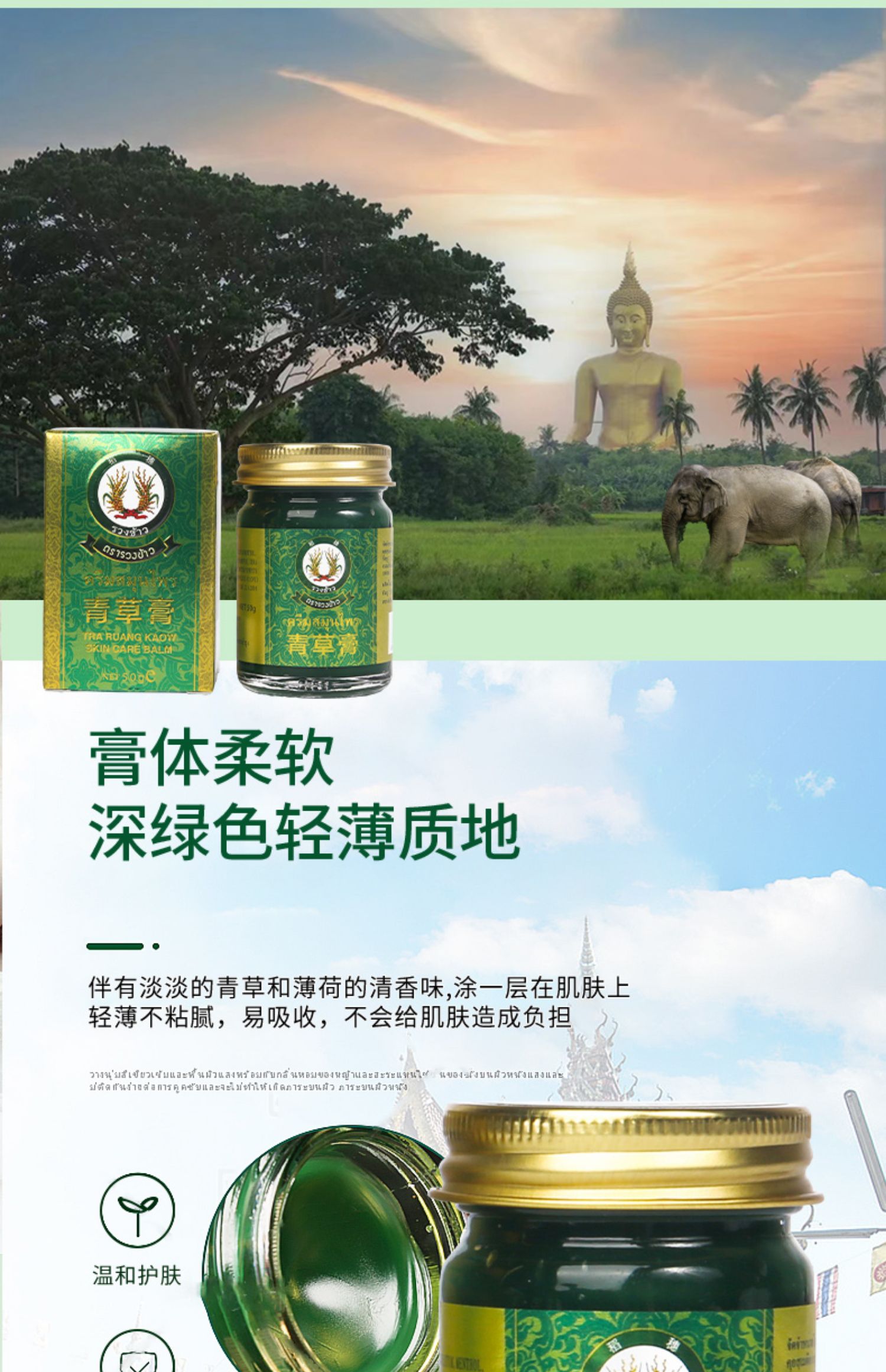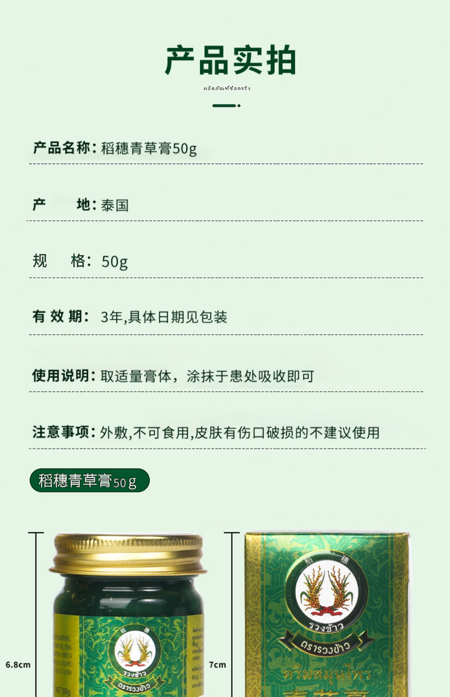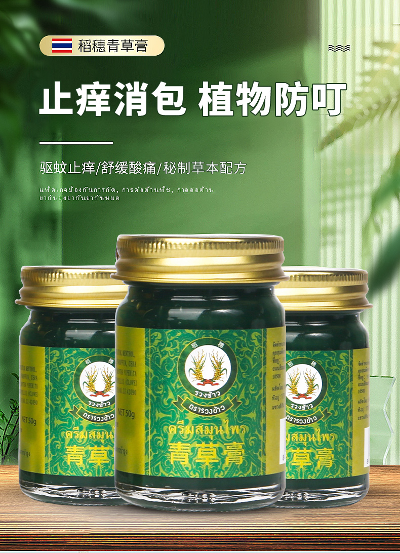 稻穗青草膏泰国进口正品止痒消包舒缓药膏宝宝儿童蚊虫叮咬清凉油