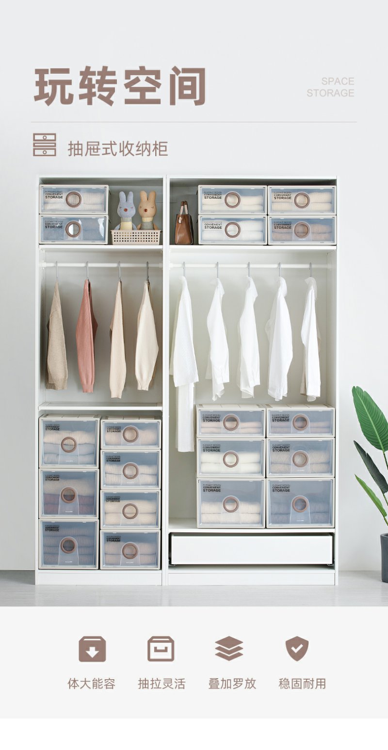 【茶花】抽屉式收纳柜卧室衣柜收纳2只装