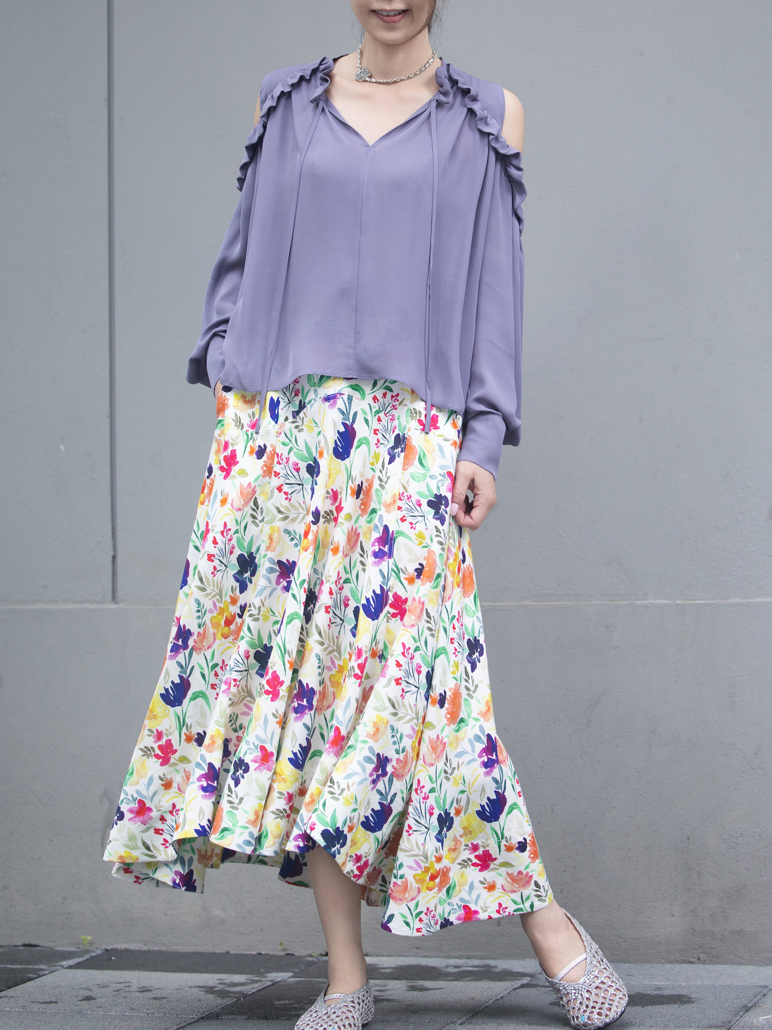 TYNVIE 拼接织花边长袖上衣-灰蓝色