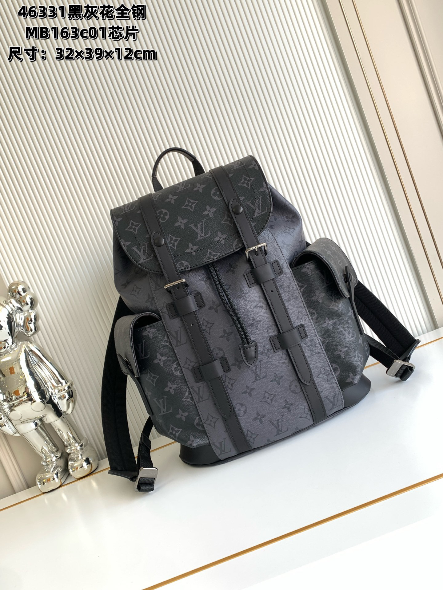 秋冬特惠💰1470 渠道级LV【全钢五金 MB163c01变码芯片】te级LV 全套包装 M46331黑拼灰花 本款Christopher 小号双肩包