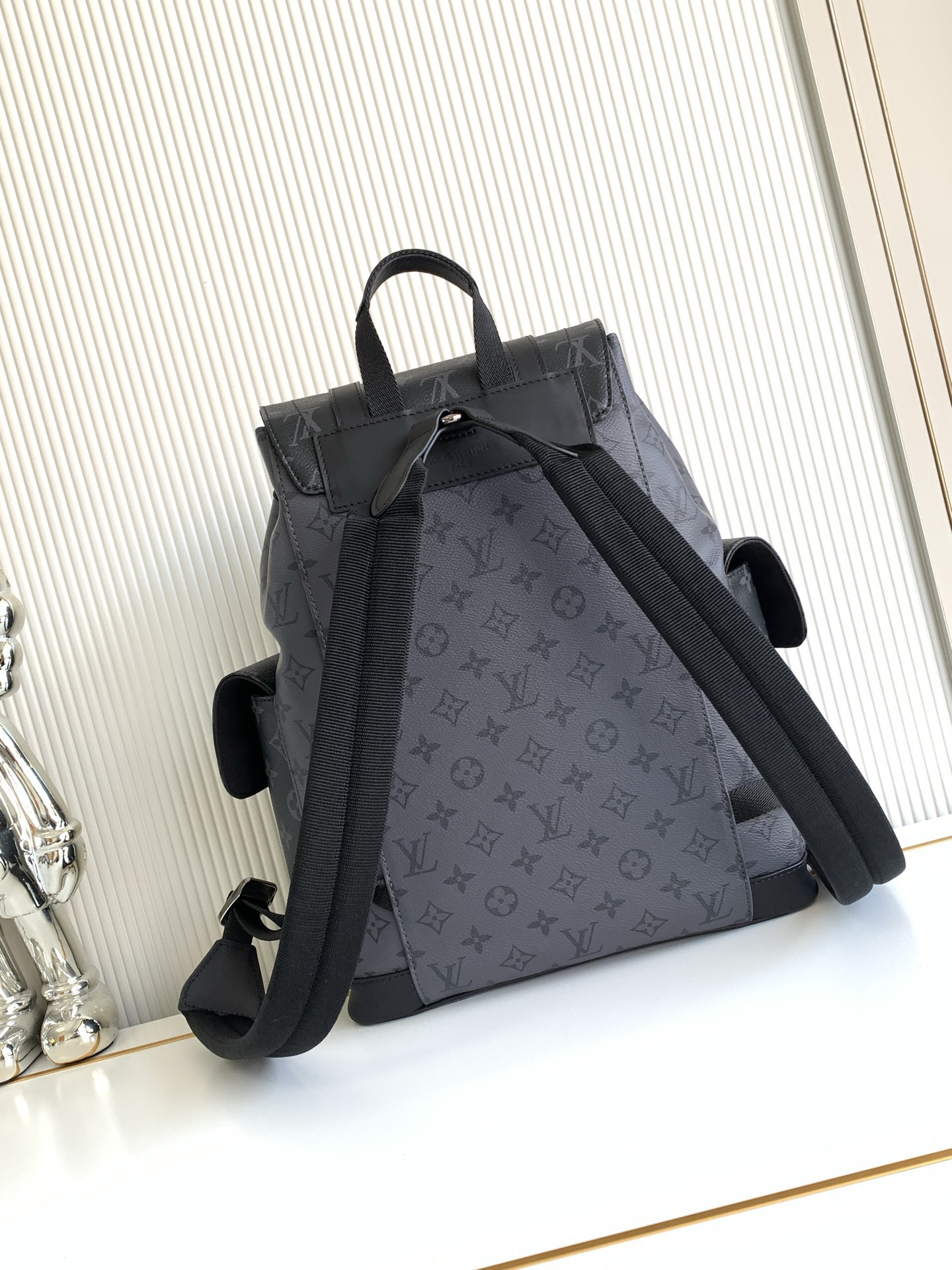 秋冬特惠💰1470 渠道级LV【全钢五金 MB163c01变码芯片】te级LV 全套包装 M46331黑拼灰花 本款Christopher 小号双肩包为Monogram Eclipse Reverse帆布勾勒深邃皮革饰边,以精巧尺寸呈现登山包的刚毅气息。侧袋方便取放随行物品,不配有按扣封口的皮革翻盖实现稳妥收纳。