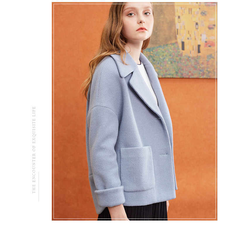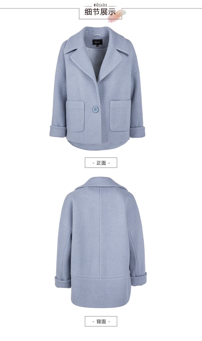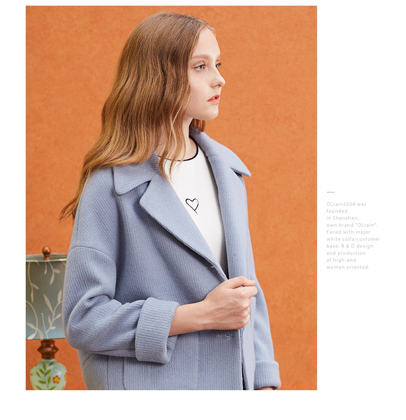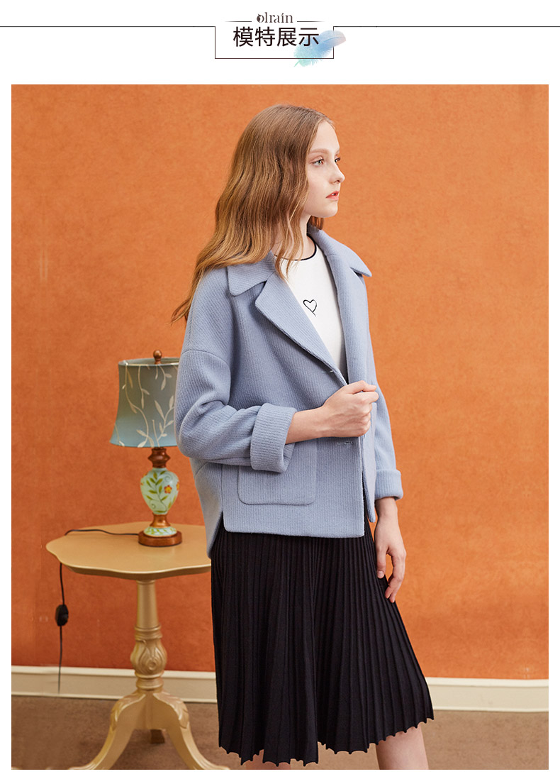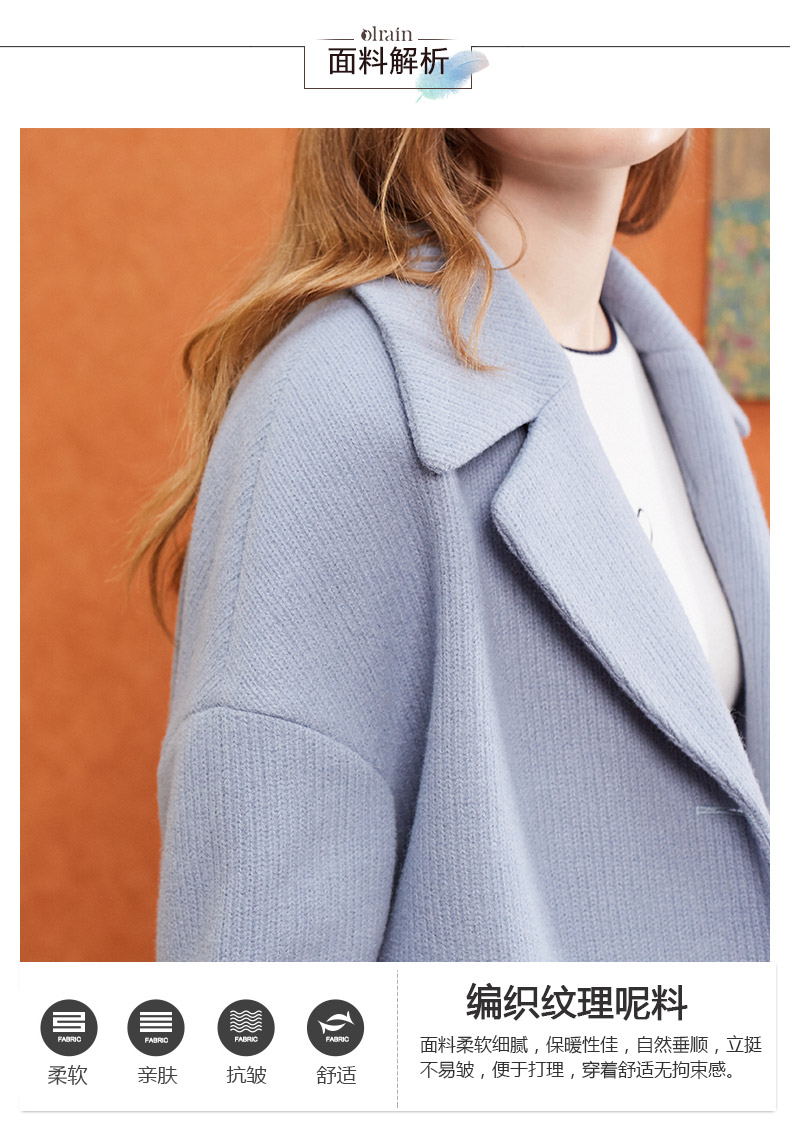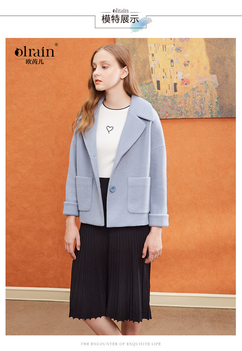 欧芮儿2019冬装女装宽松显瘦口袋大翻领长袖毛呢外套女短款