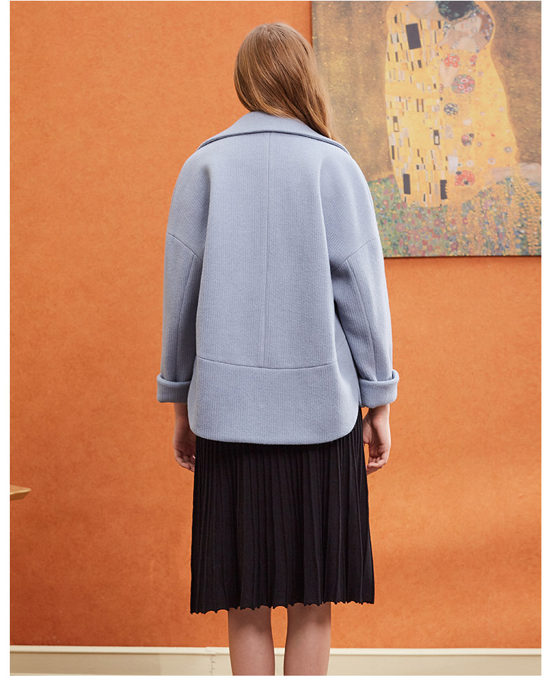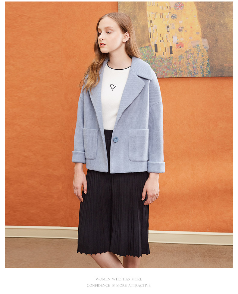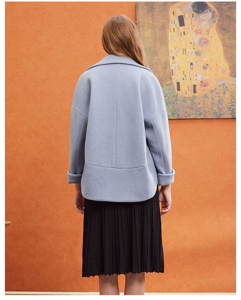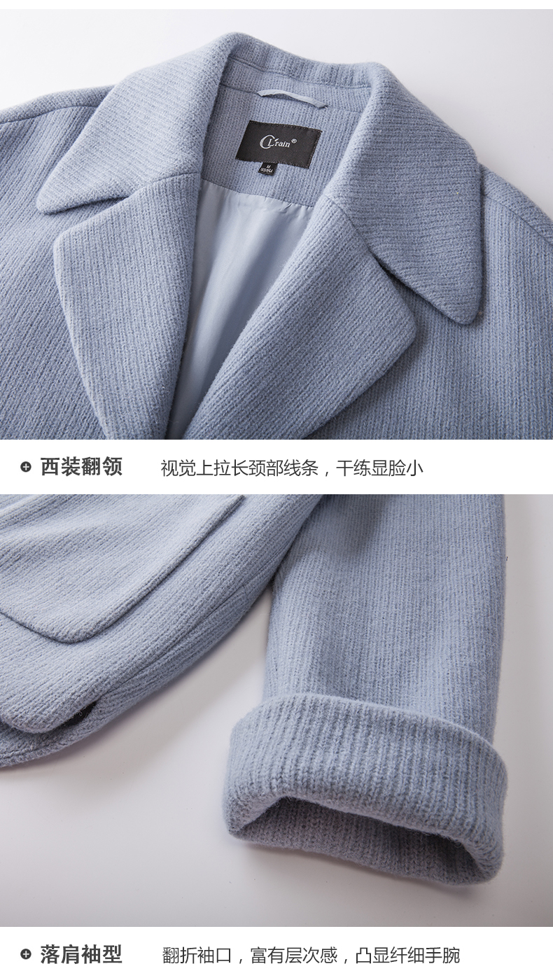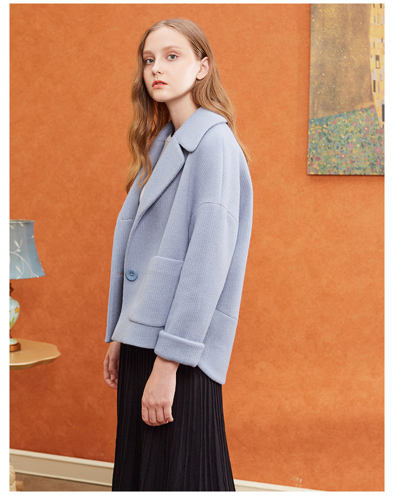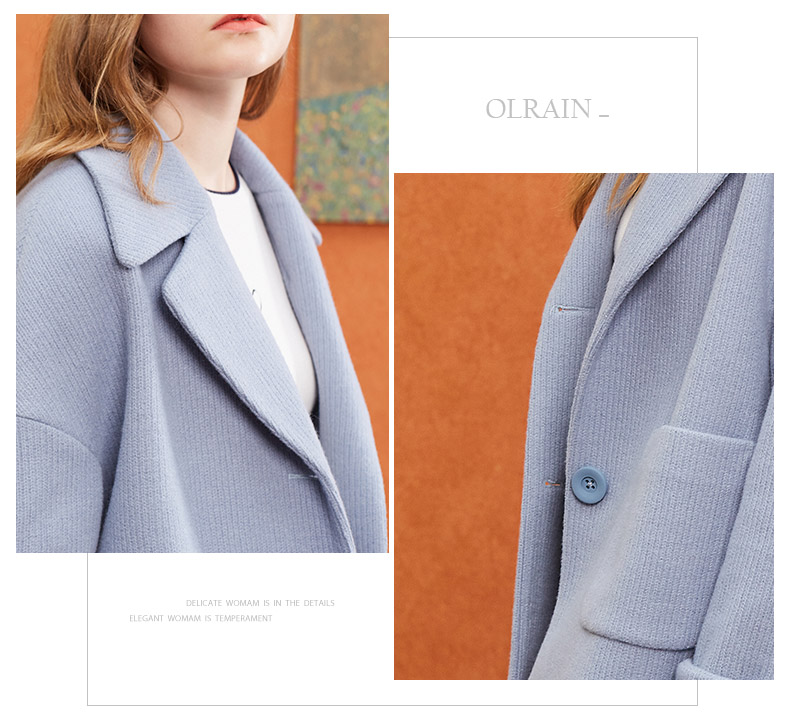 欧芮儿2019冬装女装宽松显瘦口袋大翻领长袖毛呢外套女短款
