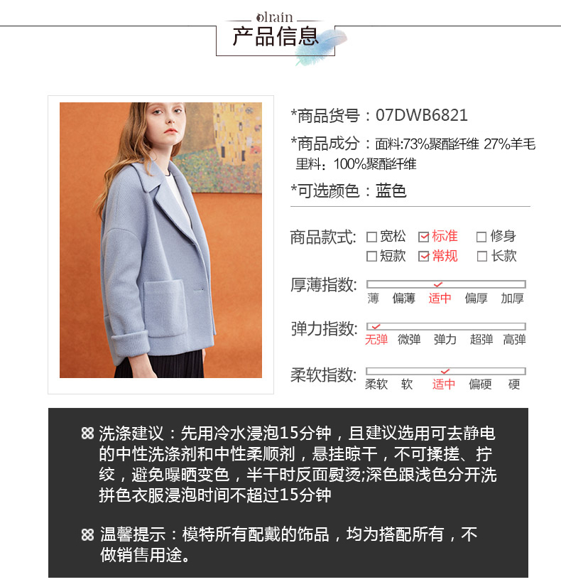 “精致”是欧芮儿olrain品牌文化的核心,欧芮儿认为,精致的女人,不但要外在动人,更要内在迷人,内外兼修,有魅力、有气质、有内涵,自信而不自傲,优雅而不矫揉,自有万种风情而不轻浮,更不故作矜持。