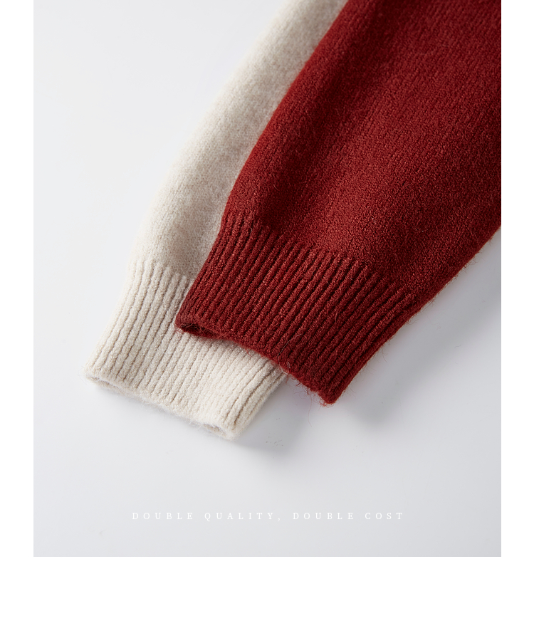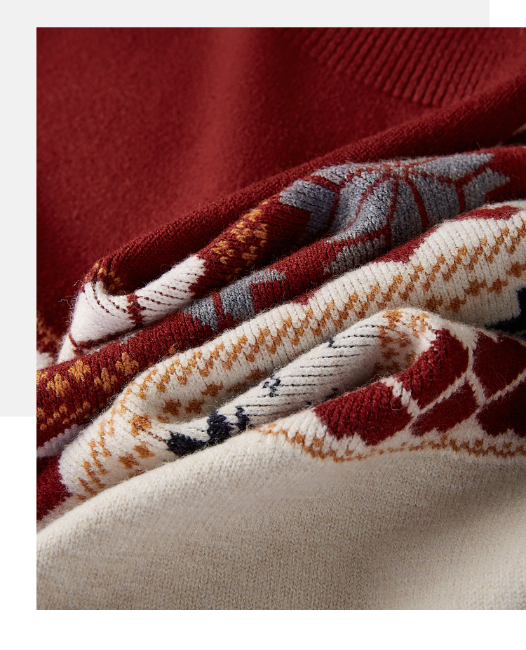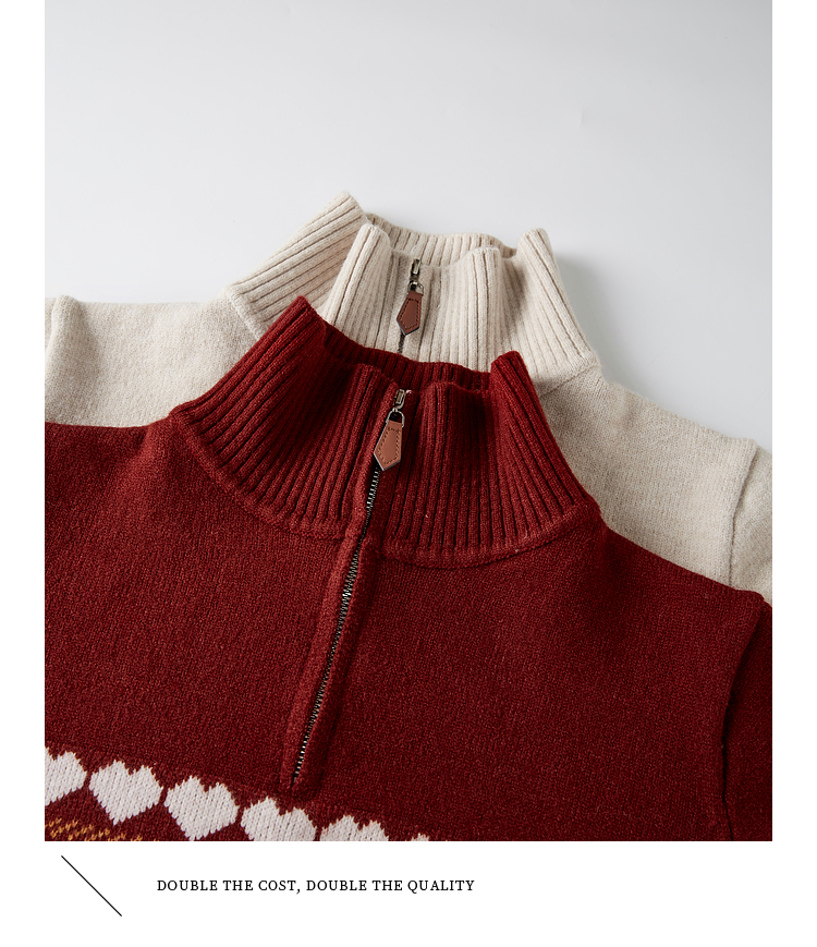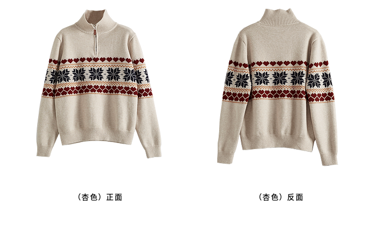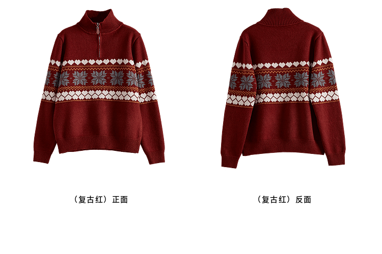 【1件66折】熙世界复古费尔岛新年红色针织衫长袖半拉链毛线衫2025春秋新款