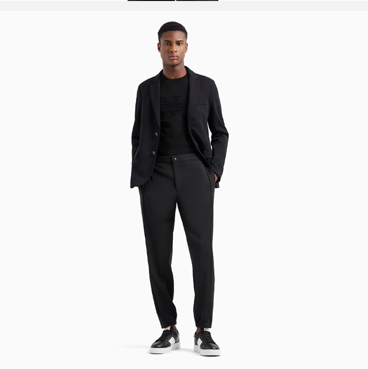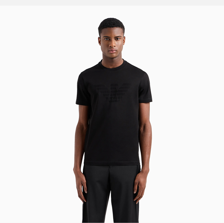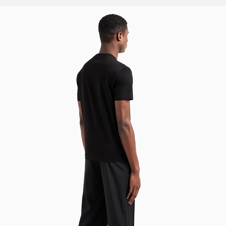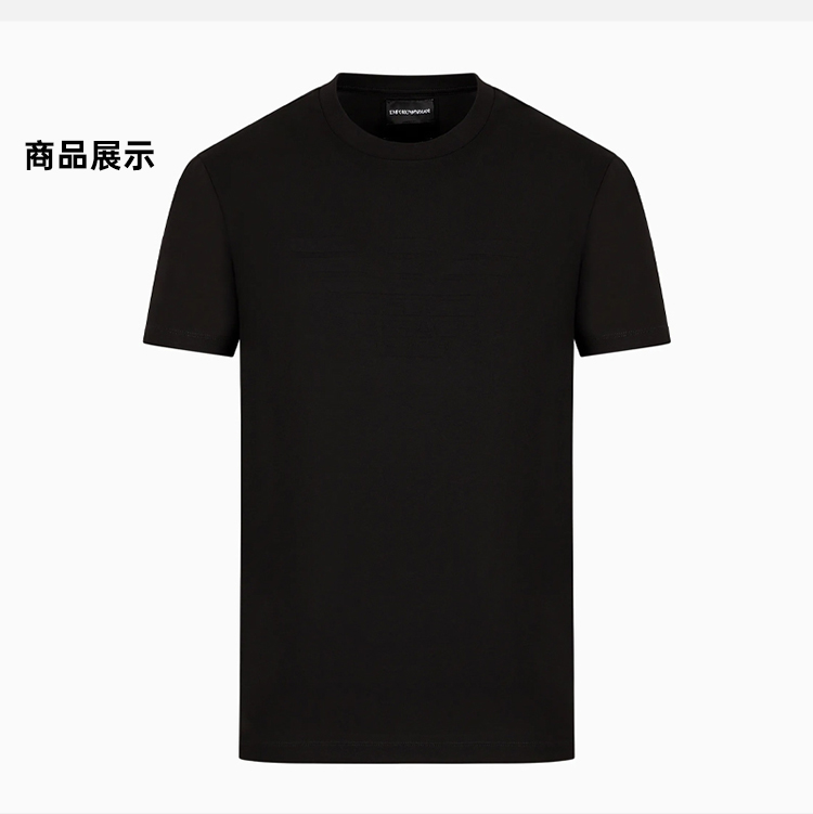 【一】EMPORIO ARMANI 阿玛尼 男士带提花徽标的平纹针织圆领短袖T恤 黑色 8N1TD2 1JGYZ 0022