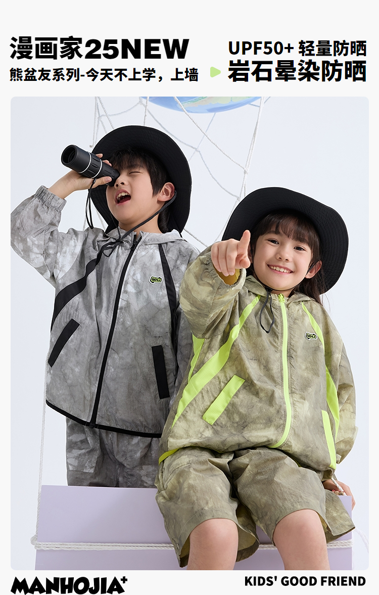 漫画家【岩石防晒】儿童防晒衣UPF50+轻薄透气防晒外套夏