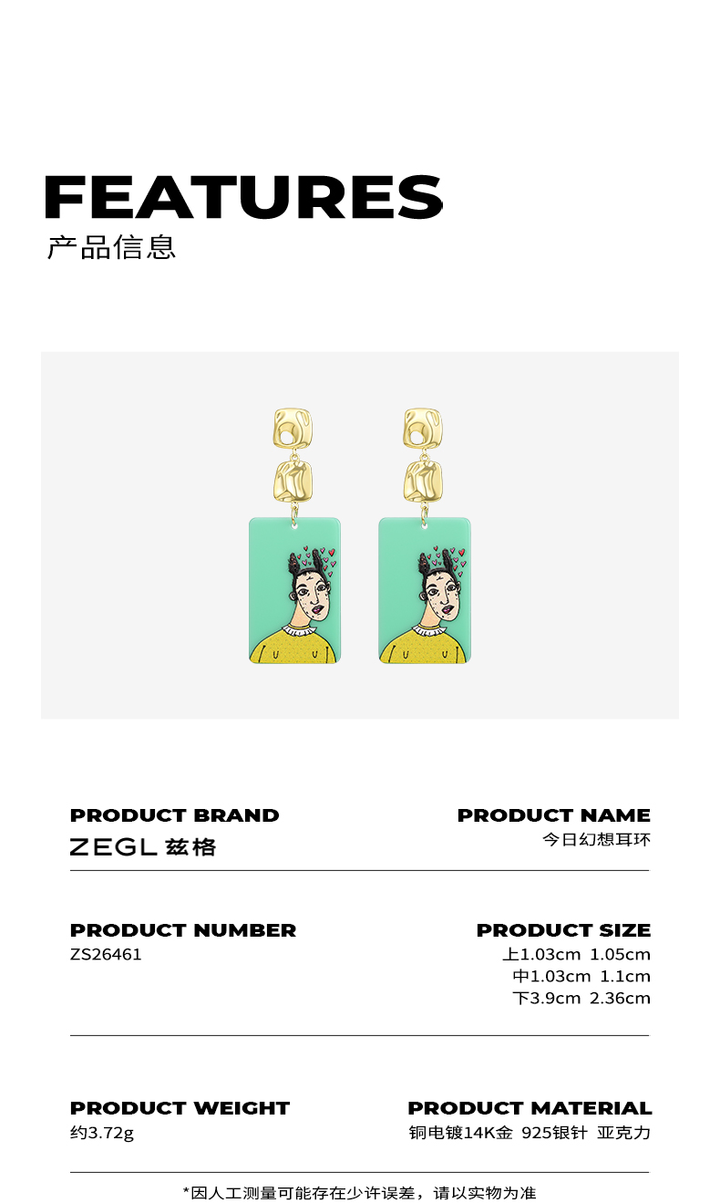 ZEGL亚克力幻想少女耳环女夏季小众气质耳坠耳钉925银针网红耳饰
