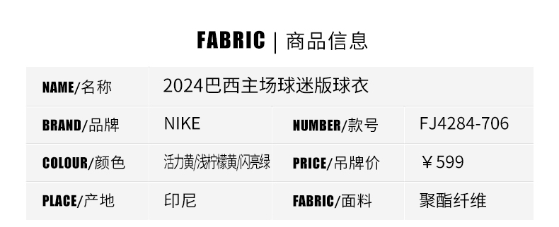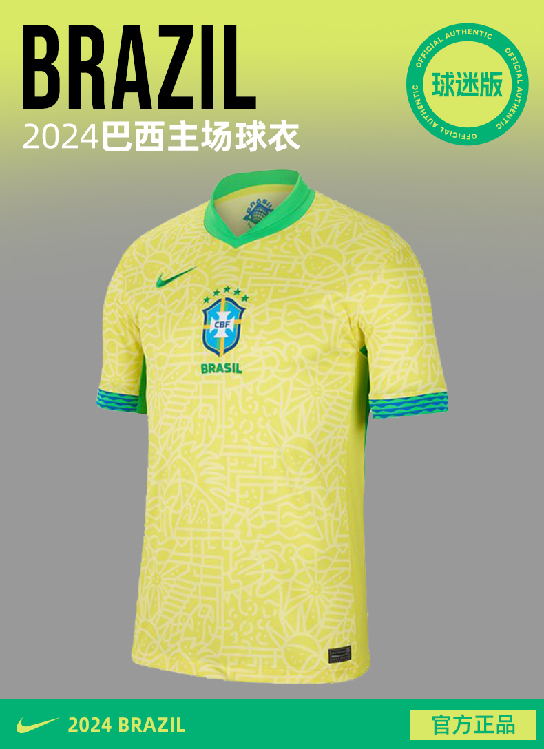 SFS正品 Nike耐克2024美洲杯巴西主场球迷版球衣FJ4284-706
