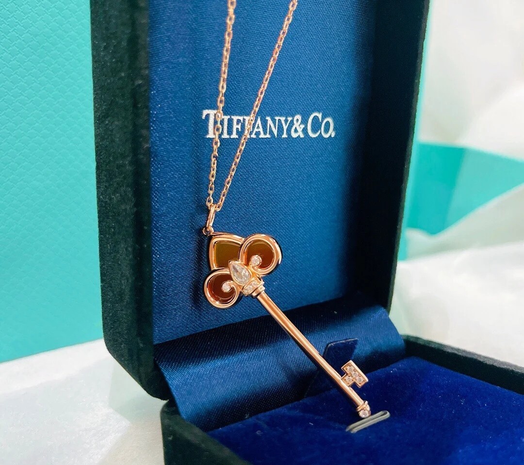 蒂芙尼Tiffany经典的鸢尾花钥匙造型,搭配使用了红玛瑙和宝石镶嵌!