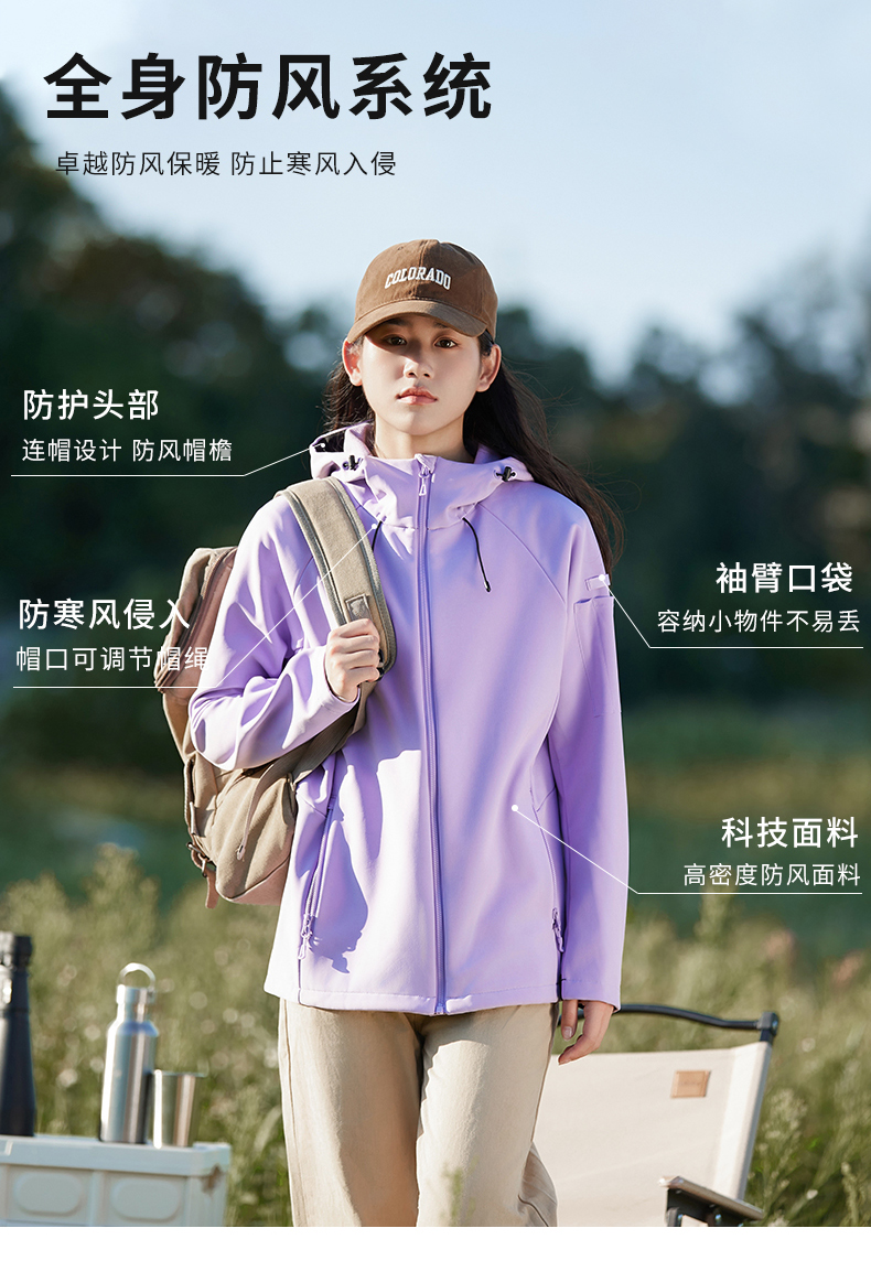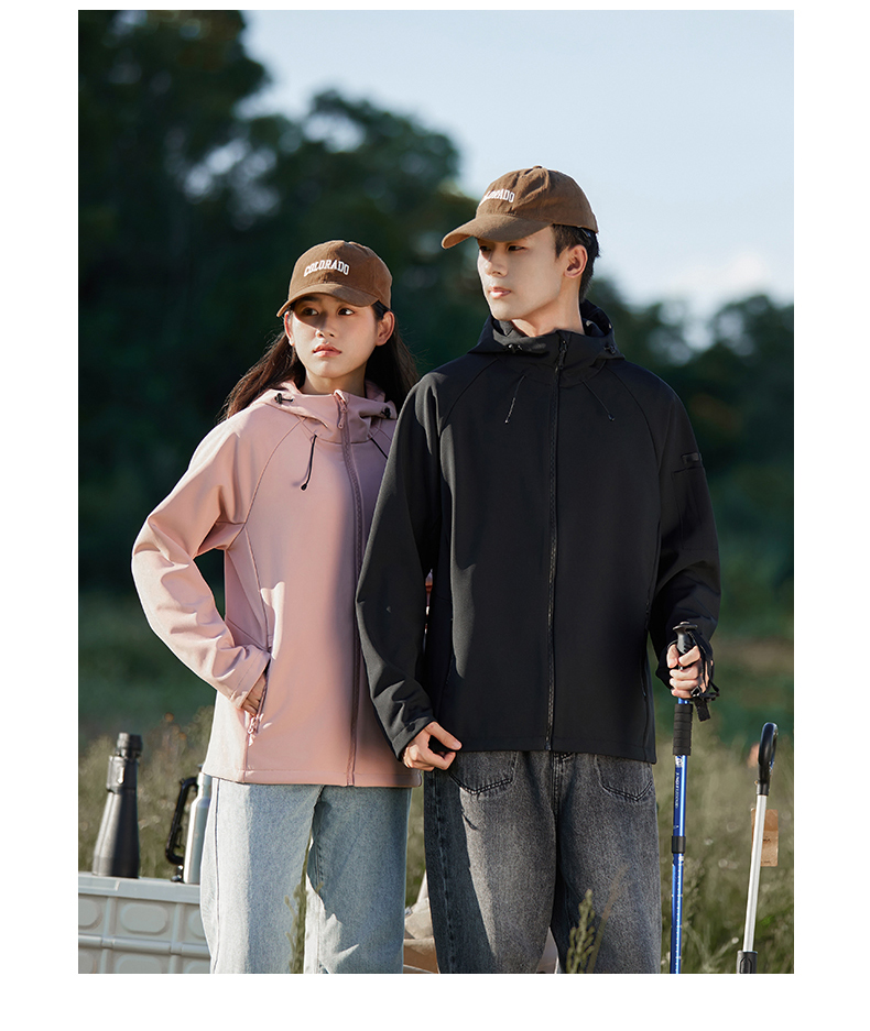 2025新款情侣软壳冲锋衣防风保暖连帽户外套男女款休闲夹克运动必备BS23690A-W