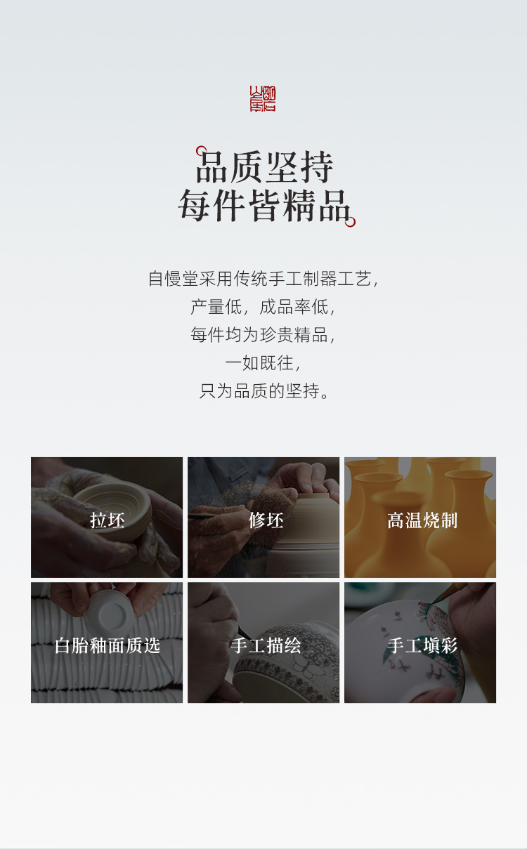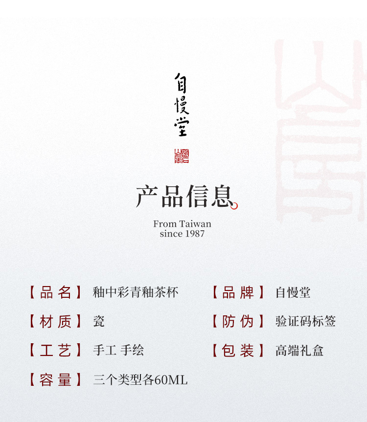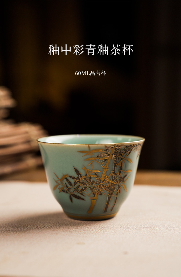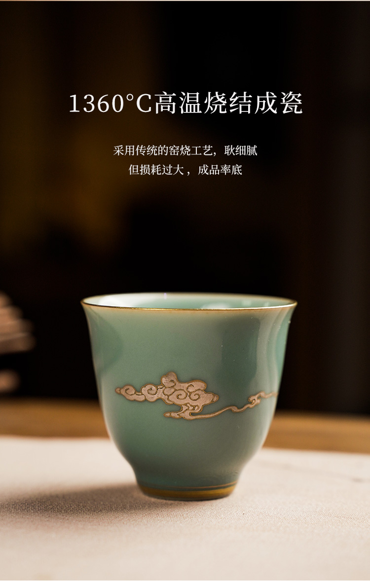 自慢堂 青釉茶杯/小 景德镇陶瓷茶杯高档个人专用功夫茶杯品茗杯