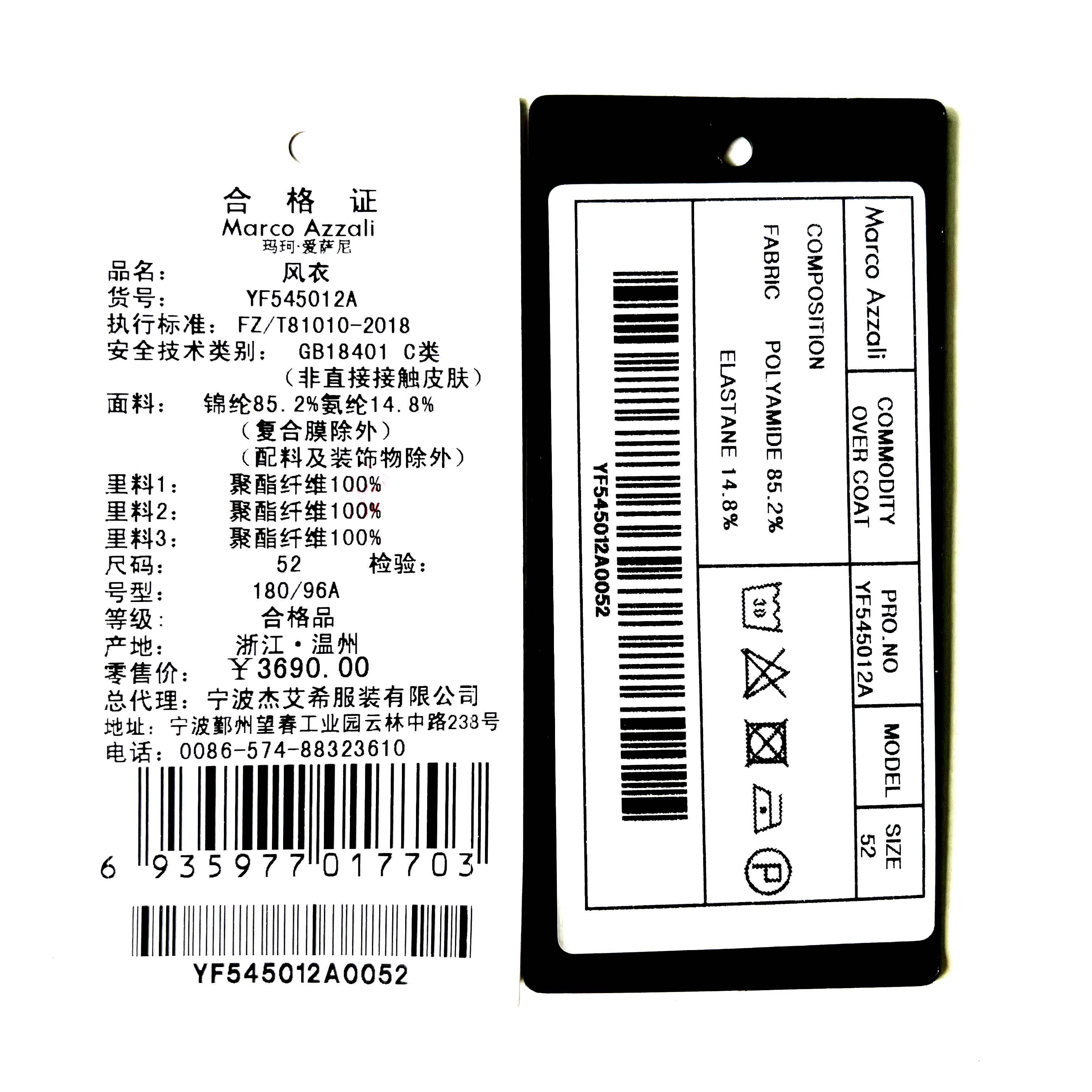 MARCO AZZALI 长款连帽风衣 YF545012A