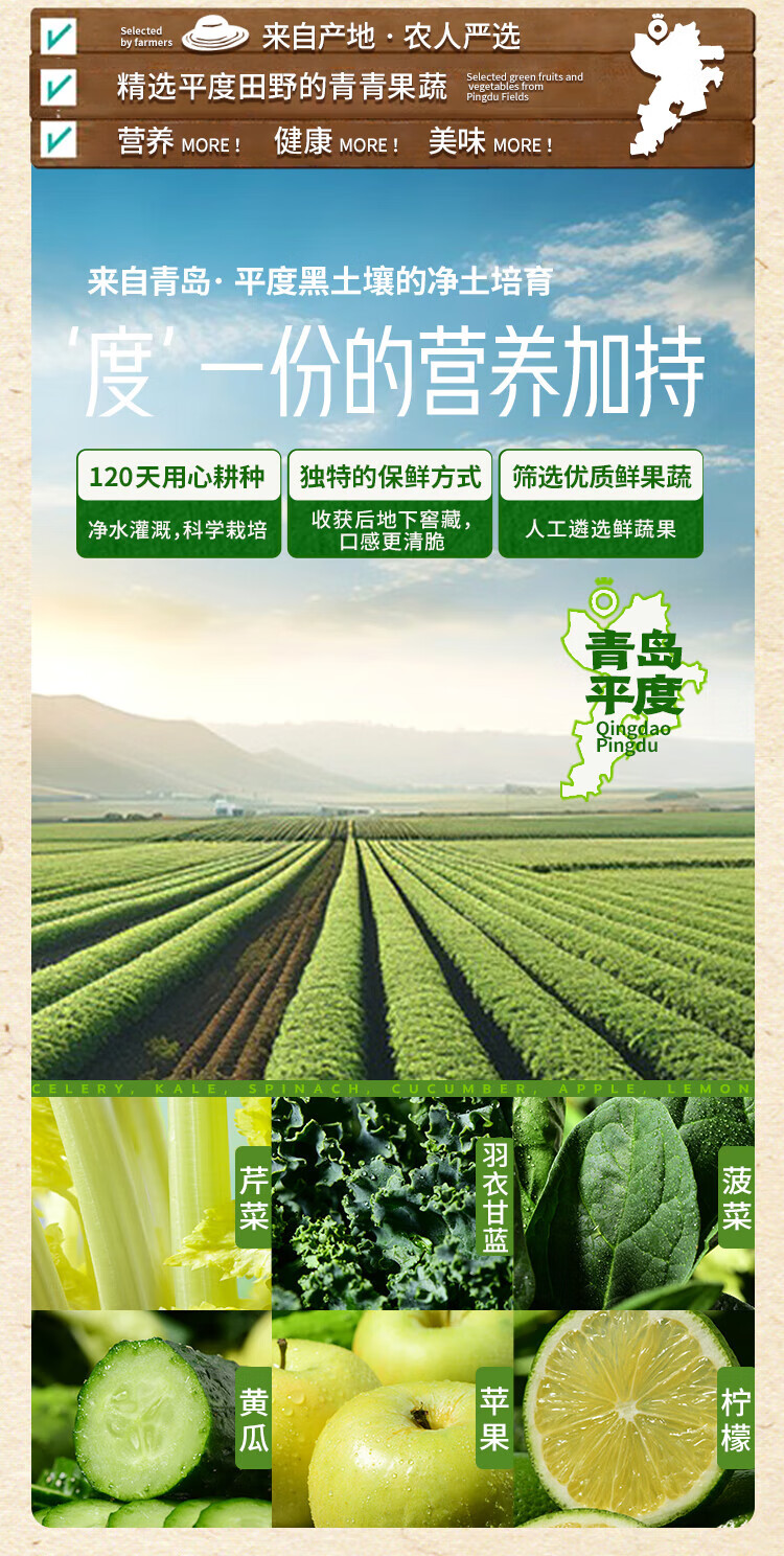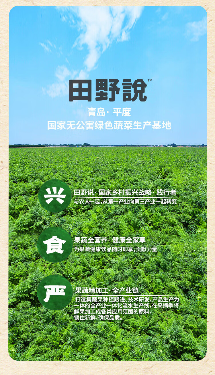 【分仓直发包邮】田野说芹菜汁羽衣甘蓝复合果蔬汁(迷你装)125ml*16盒