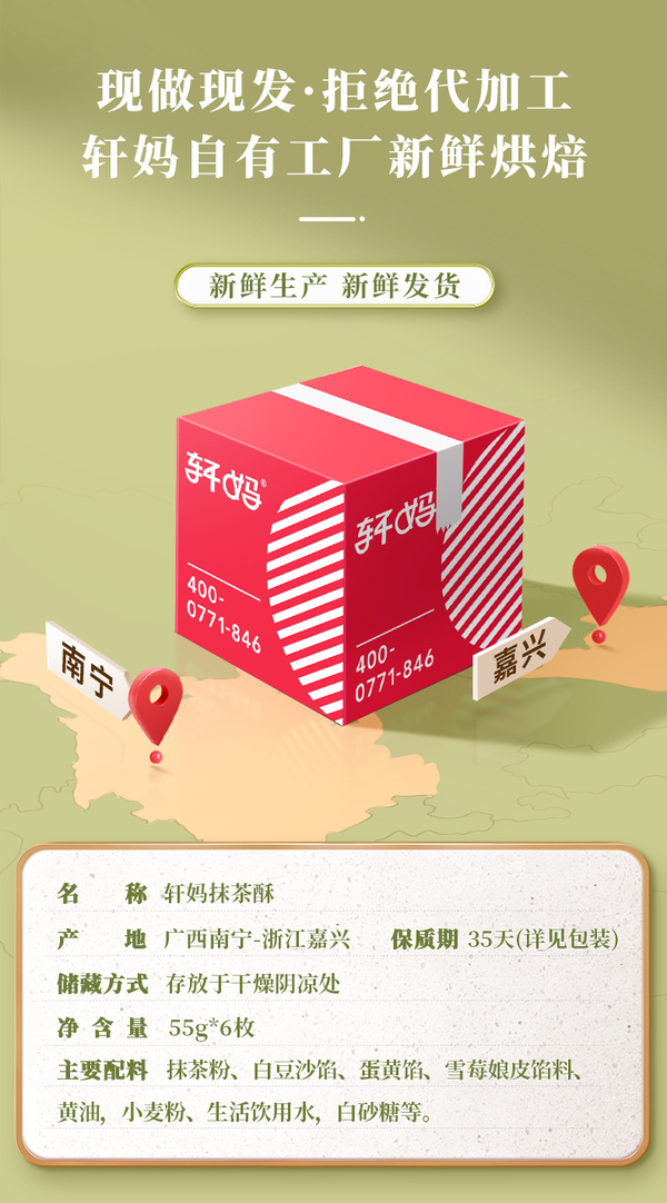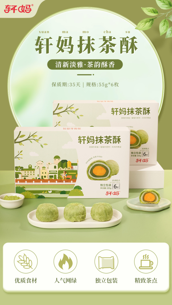 轩妈蛋黄酥抹茶味 6枚装 330g 保质期35天
