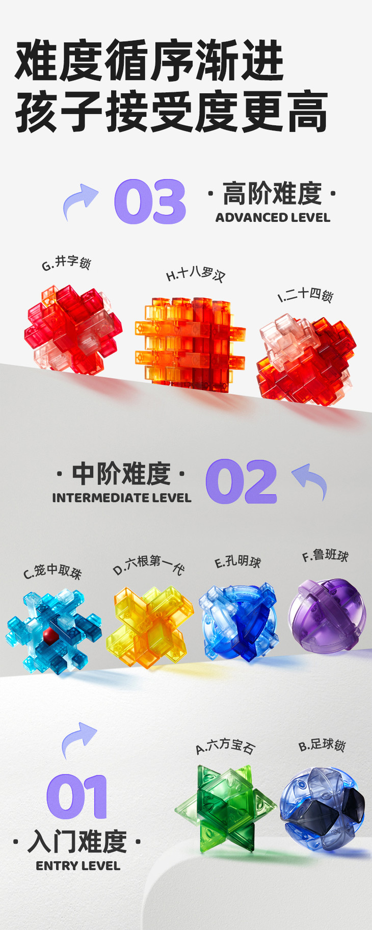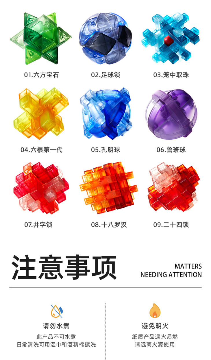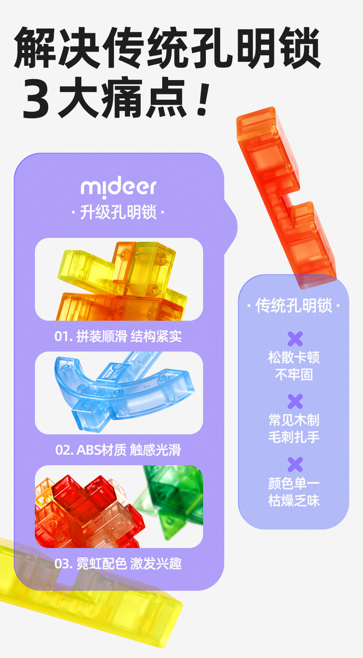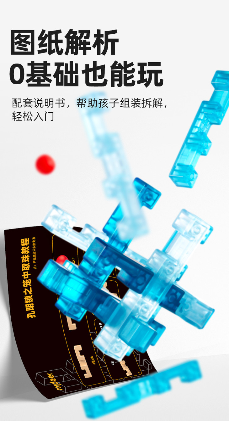 mideer弥鹿孔明锁鲁班锁全套智力解环小学生成人儿童解锁益智玩具