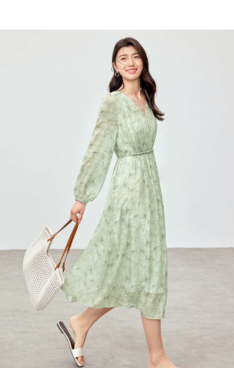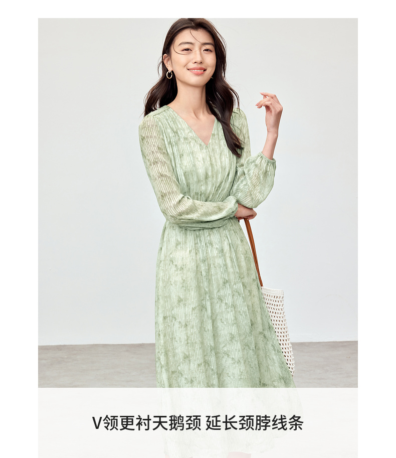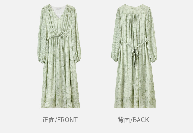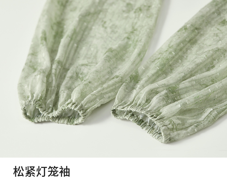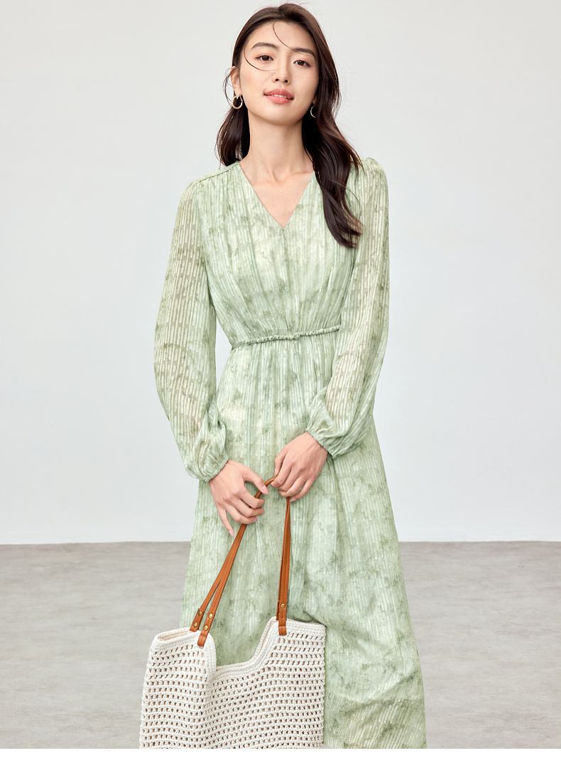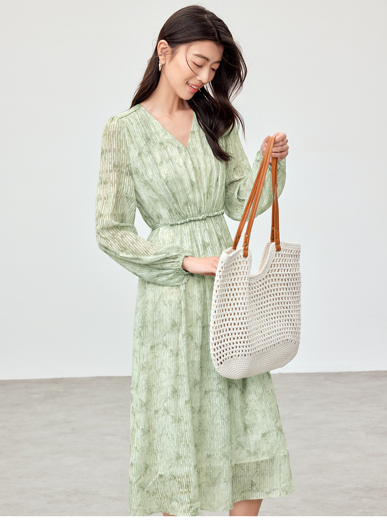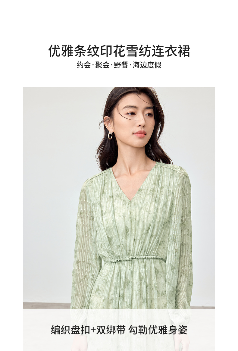 【内购】度假风V领手工编织盘扣收腰显瘦灯笼袖雪纺连衣裙-151L58189