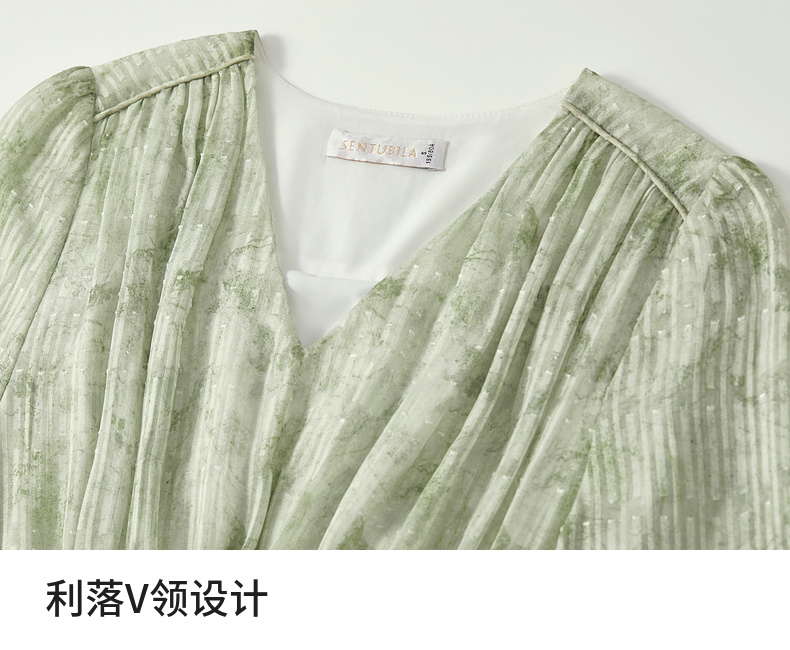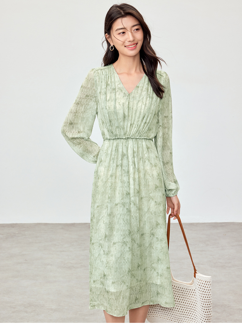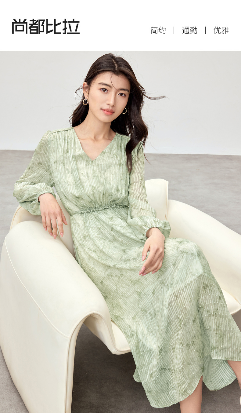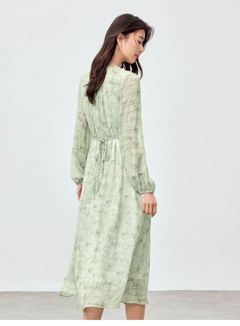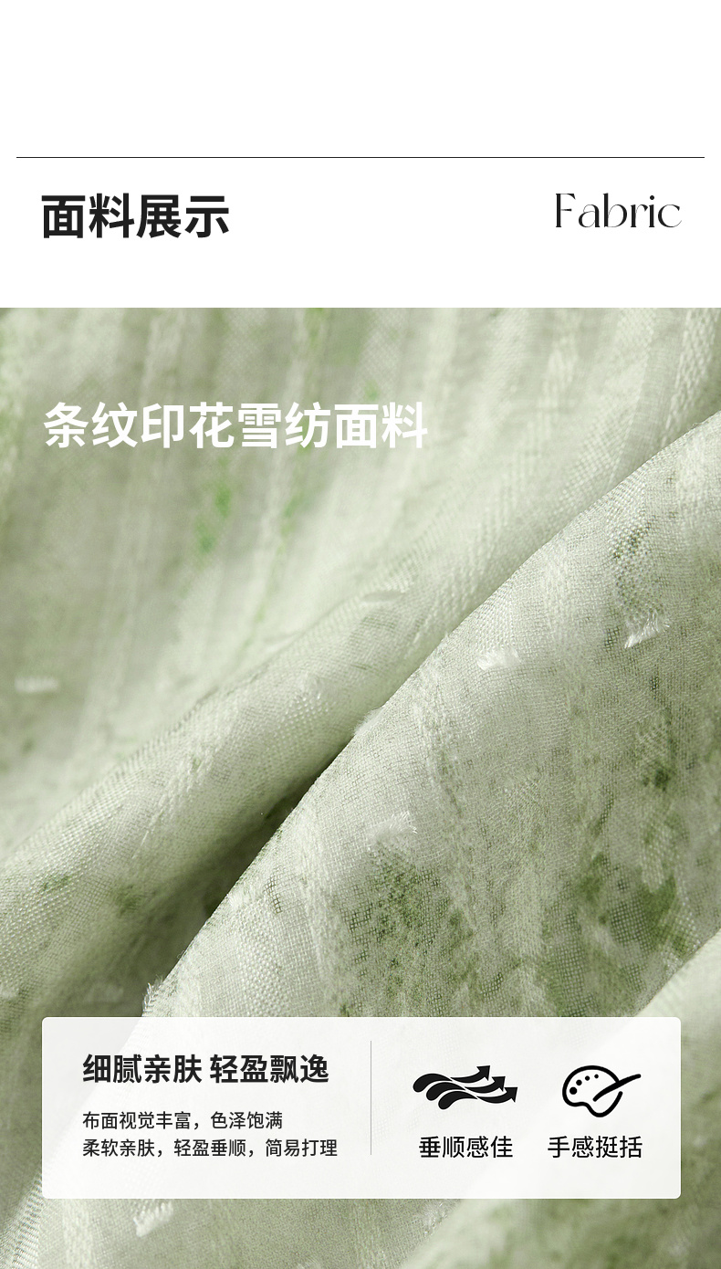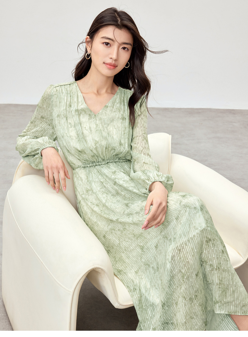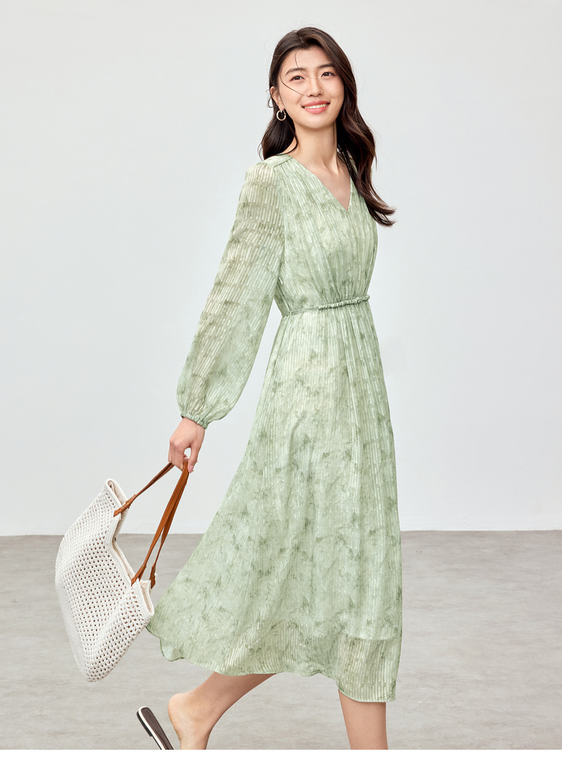 【内购】度假风V领手工编织盘扣收腰显瘦灯笼袖雪纺连衣裙-151L58189