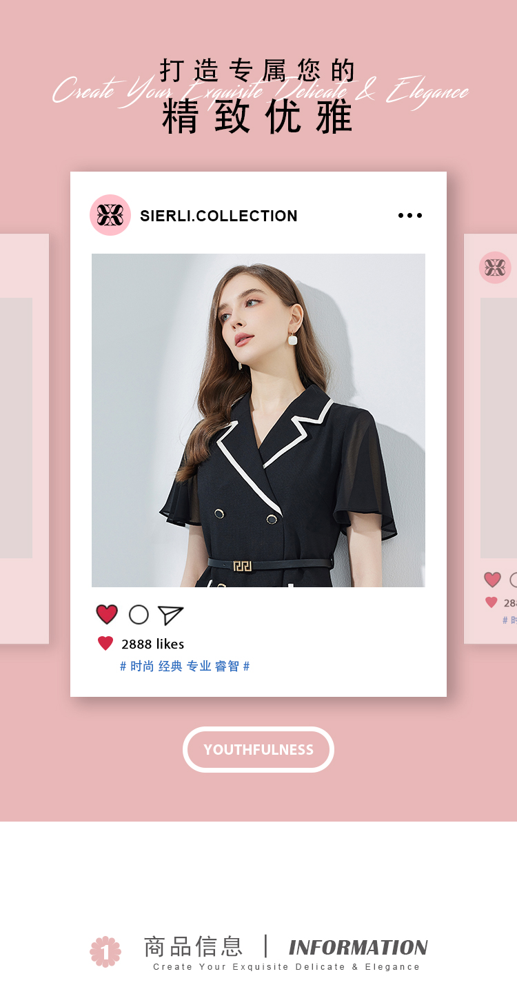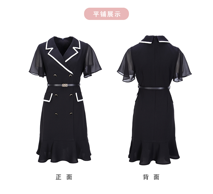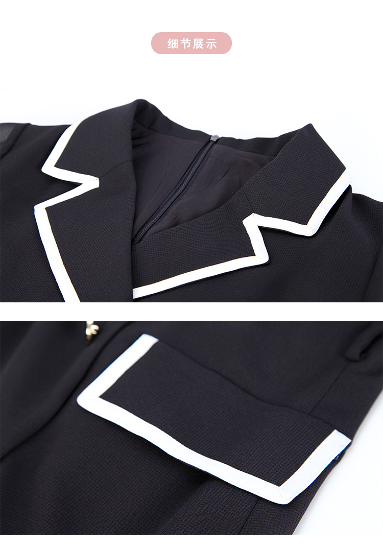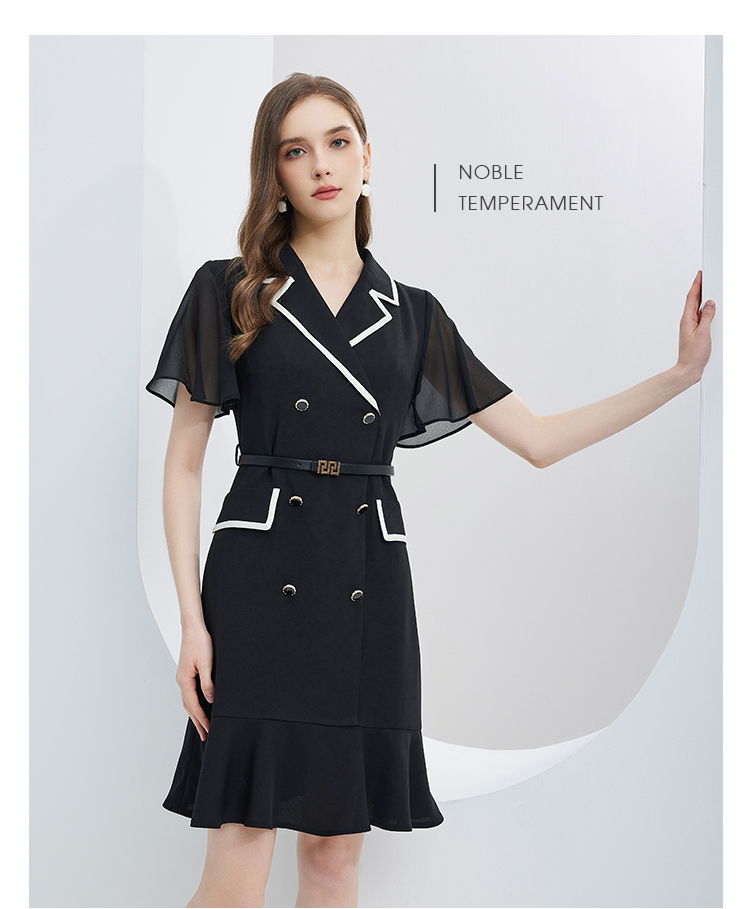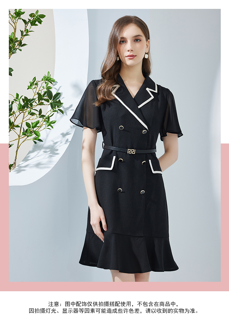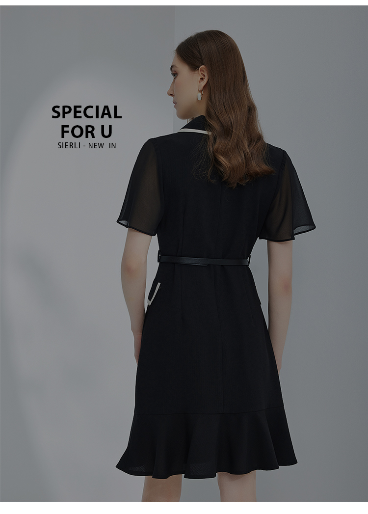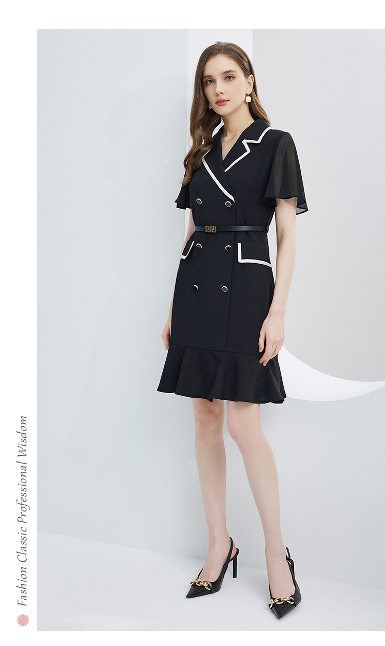 NF8F7斯尔丽瑟俪2023新款撞色镶边荷叶下摆小香风气质显瘦减龄连衣裙