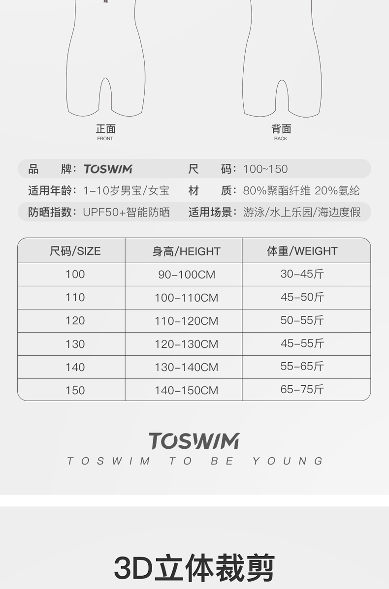 【云优选】TOSWIM拓胜儿童泳衣女孩男女童游泳衣中大童泳装防晒连体宝宝泳衣