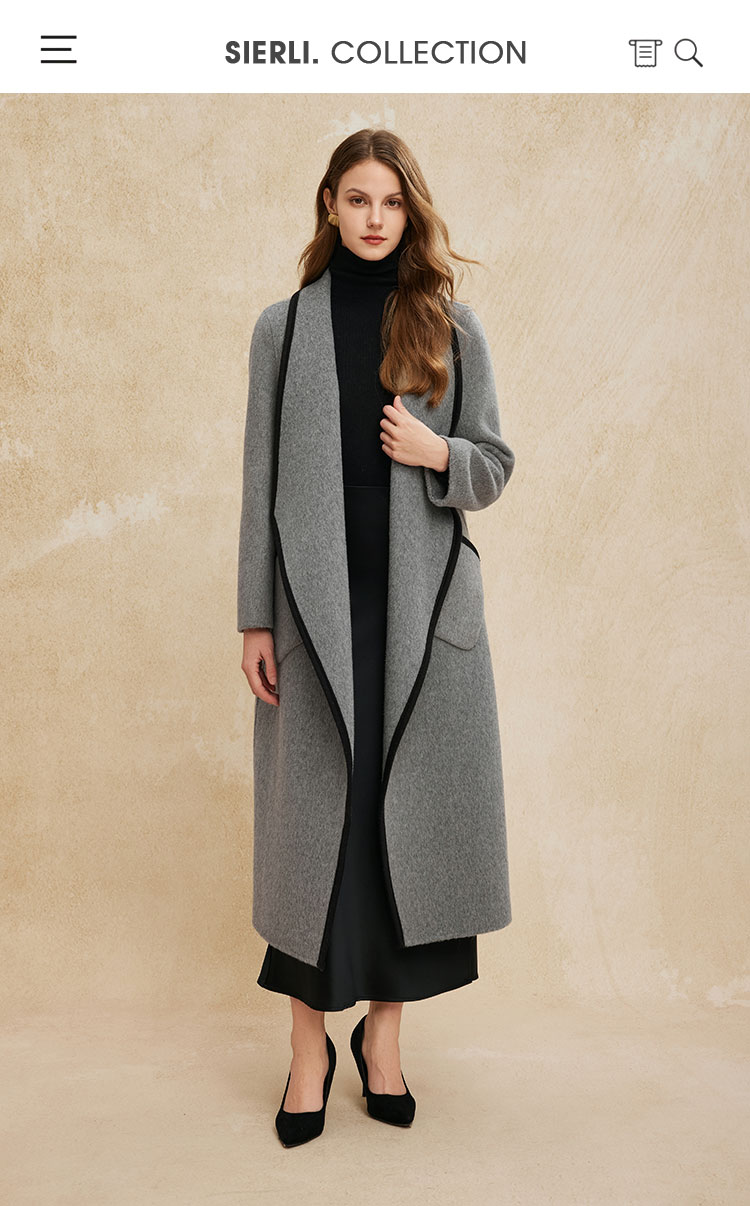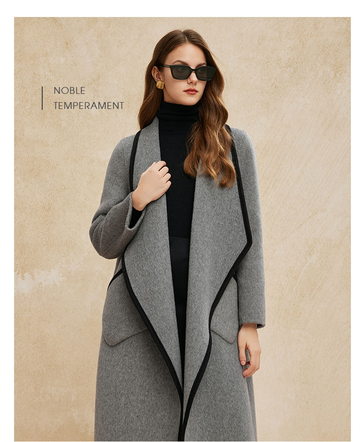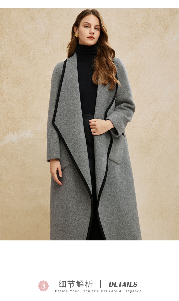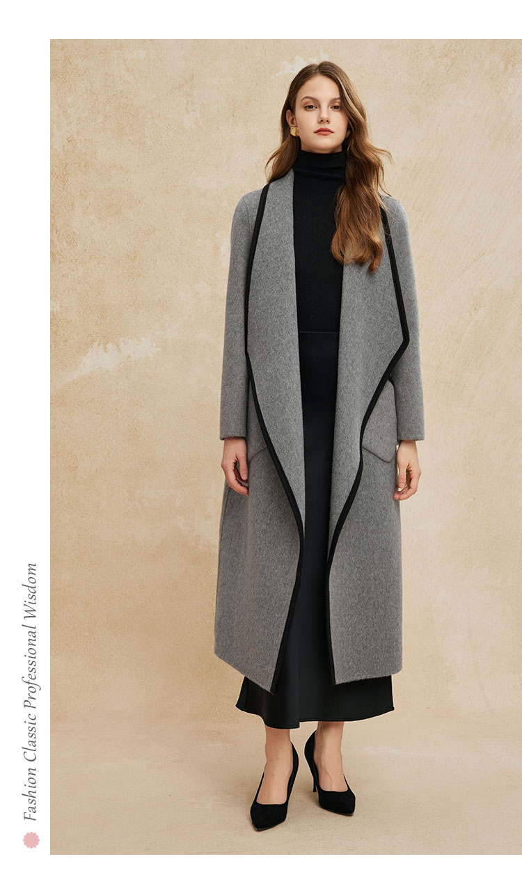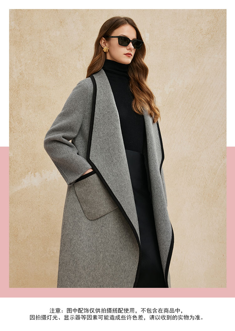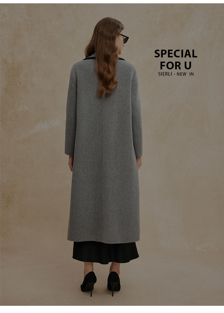 PH956斯尔丽24新款撞色设计翻领长款简约时尚休闲羊毛大衣